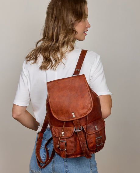 Våre dagssekker er en del av to forskjellige produktlinjer: Modellene i "Gusti Leder nature"-linjen består av vegetabilsk garvet geiteskinn, som er håndlaget i små familiebedrifter i India. Hver modell er unik og står for bærekraftig produksjon og tradisjonelt håndverk.