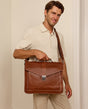 dokumentmappe businessveske skulderveske lær brun med vanntett innefôr