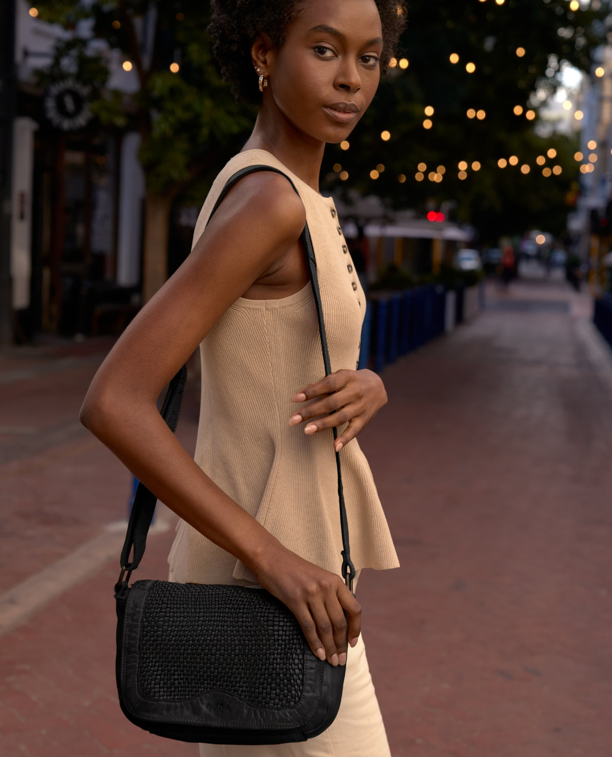 Håndveske med flettet uttrykk Airtag-lomme og magnetlukking