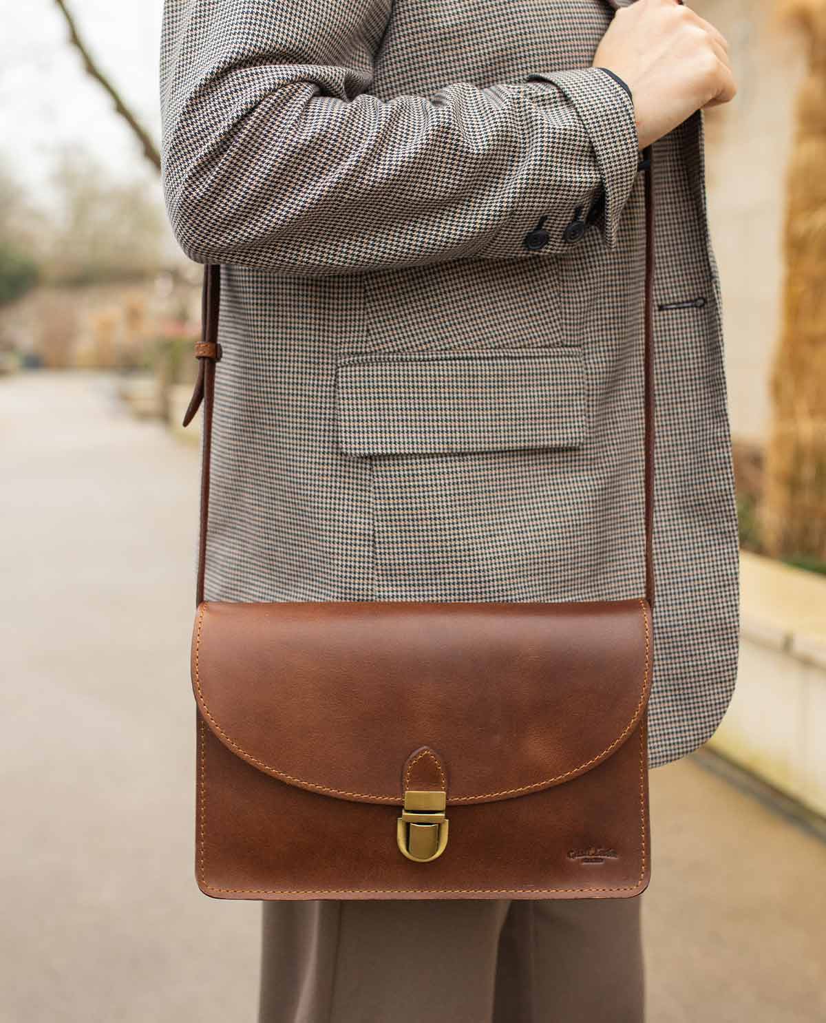 Skulderveske håndveske lærveske damer Vintage brun lær