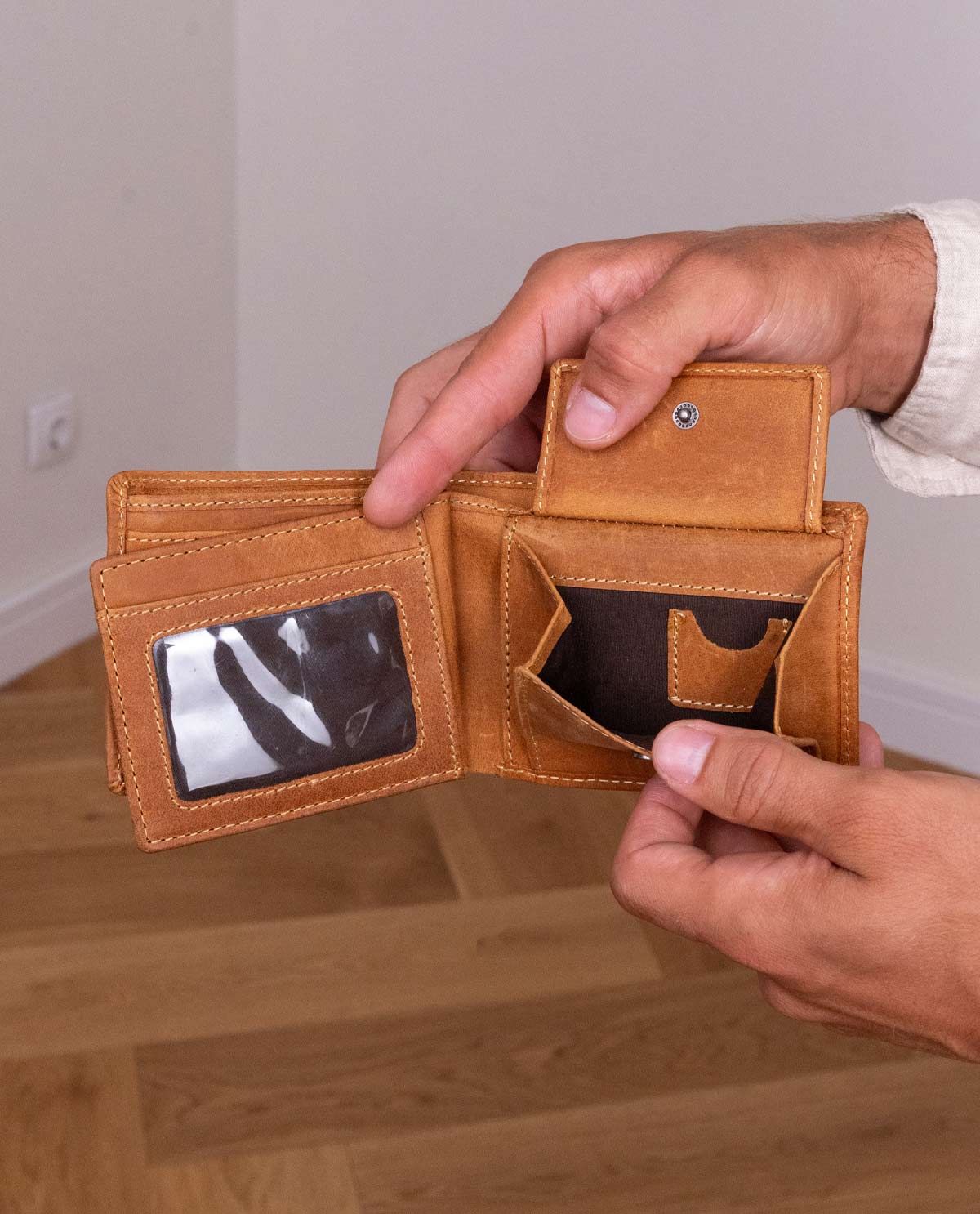 Den myke innredningen av «Oswin» sørger for at kortene og sedlene dine er trygt og godt organisert. Takket være den gjennomtenkte rominndelingen, beholder du alltid oversikten. Kombinasjonen av robust skinn og praktiske detaljer gjør «Oswin» til en trofast følgesvenn som alltid gjør en god figur, både i hverdagen og ved spesielle anledninger. En lommebok som ikke bare er funksjonell, men også imponerer med sin tidløse eleganse.