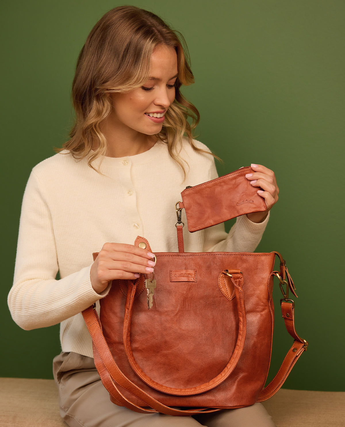 Håndveske Skulderveske Lærveske Shopper Dame Designet i Berlin Brun Lær