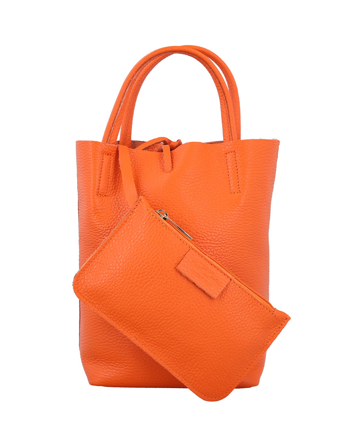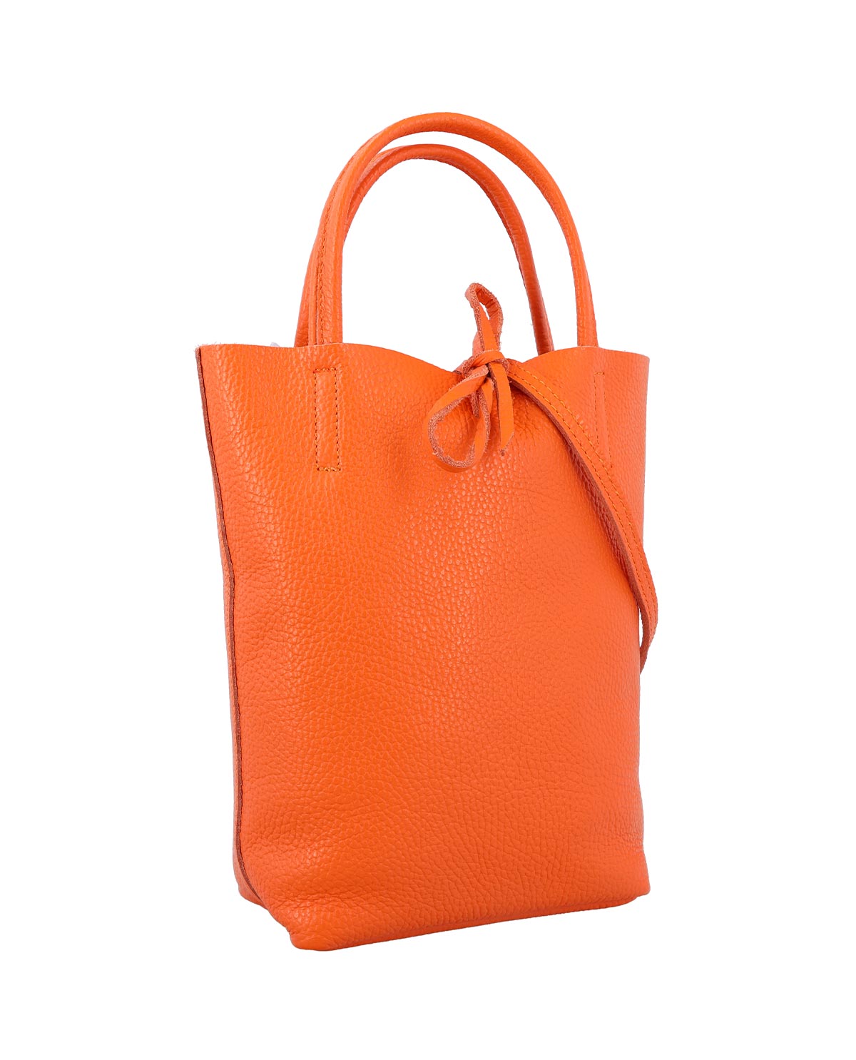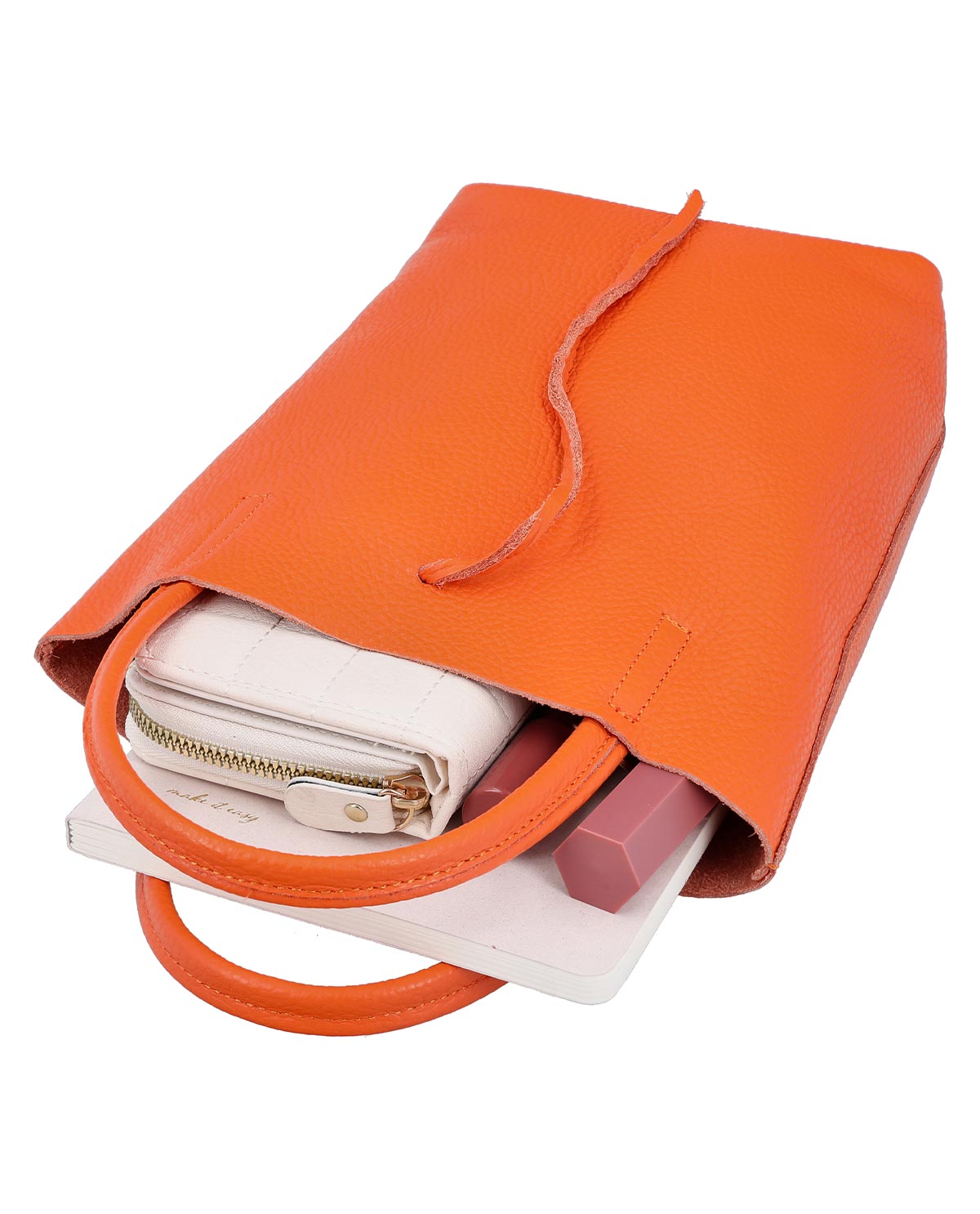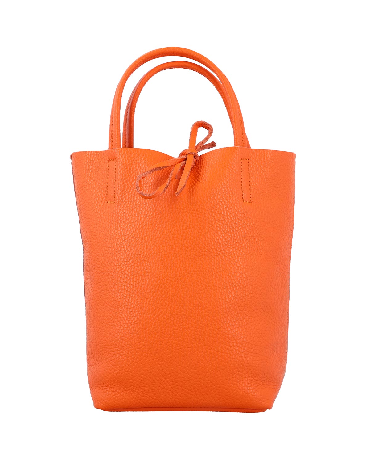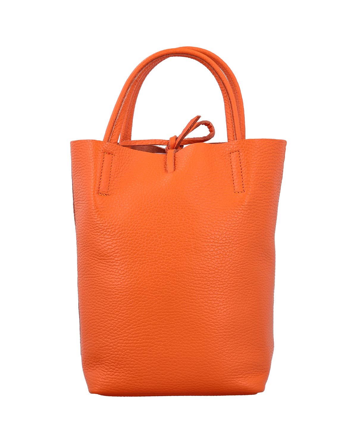 Skulderveske Lærveske Shopper Håndveske Dame Oransje Lær - Made in Italy