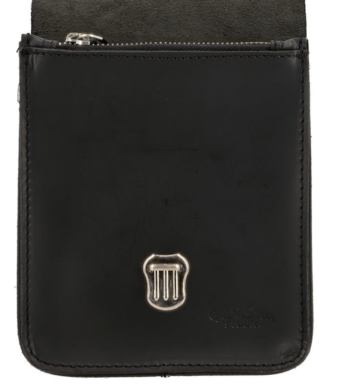 "Cadel E." er laget av solid og høykvalitets bøffellær og overbeviser med et moderne koffertutseende. Denne praktiske vesken er ikke bare egnet for hverdagsbruk, men kan også enkelt festes til styret ditt takket være de to stroppene på baksiden av vesken. Det romslige hovedrommet gir nok plass til lommebok, mobiltelefon og nøkler, mens det ekstra glidelåsrommet på forsiden gir plass til mindre gjenstander som for eksempel laderen din, hodetelefoner eller notater. Alt forblir sikkert og lett tilgjengelig. Takket være låsen kan du være sikker på at eiendelene dine er beskyttet.