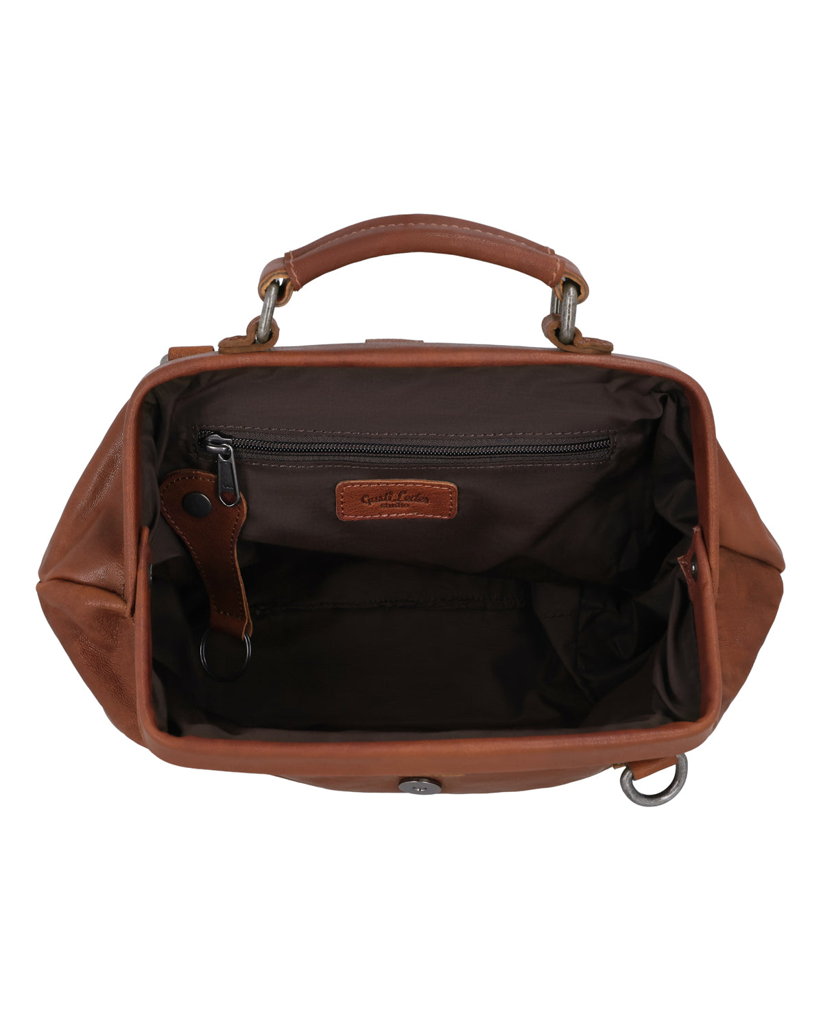 Det romslige hovedrommet med ekstra innerlomme med glidelås gir deg nok oppbevaringsplass til nøkkelknippe, stor lommebok, smarttelefon og mer – det er til og med plass til en pocketbok. Den lengdejusterbare og avtakbare bærestroppen sørger for maksimal fleksibilitet og individuell bærekomfort. For en personlig touch er det også integrert en graveringslapp, mens den diskrete Gusti-logolappen fullender looken. Den karakteristiske bøylelåsen er utstyrt med en magnetlås i spenneutseende og gir ekstra sikkerhet.