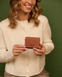 Møt din nye skinn-skjønnhet "August". Denne elegante vesken hjelper deg med å ha det viktigste nær deg... Og ser flott ut mens den gjør det. Den er den perfekte kompakte lommeboken for kvelder ute med venner, stilfulle måltider i byen eller spennende eventyr.