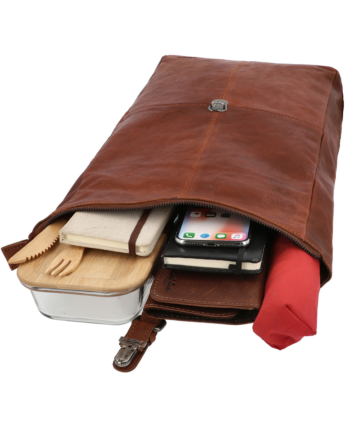 Selv om «Valja» bare rommer rundt 9 liter, tilbyr den takket være høykvalitets geiteskinn nok plass til diverse notatbøker, lommebok, pennal og proviant. Et lite hemmelig rom på baksiden, som kan lukkes med glidelås, gir ekstra sikkerhet. Metallspennen kompletterer designet og beskytter eiendelene dine pålitelig mot vind, vær og støv. En trofast følgesvenn for din perfekte vintageopptreden.