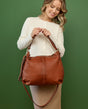 Leter du etter en klassisk shopper som ikke lar deg stå i regnet? Da er «Hannah» akkurat det du trenger. Denne mellomstore skuldervesken er laget av robust og slitesterkt LWG-sertifisert okseskinn i en kraftig kamelbrun farge. Med det romslige innerrommet har du nok plass til alt du trenger på en tur gjennom byen eller i hverdagen på jobben. Takket være det stilige designet, inspirert av Berlin, er du alltid godt rustet, enten det er til daglig bruk eller en spontan utflukt. For å gi den et personlig preg er det også integrert en graveringslapp.