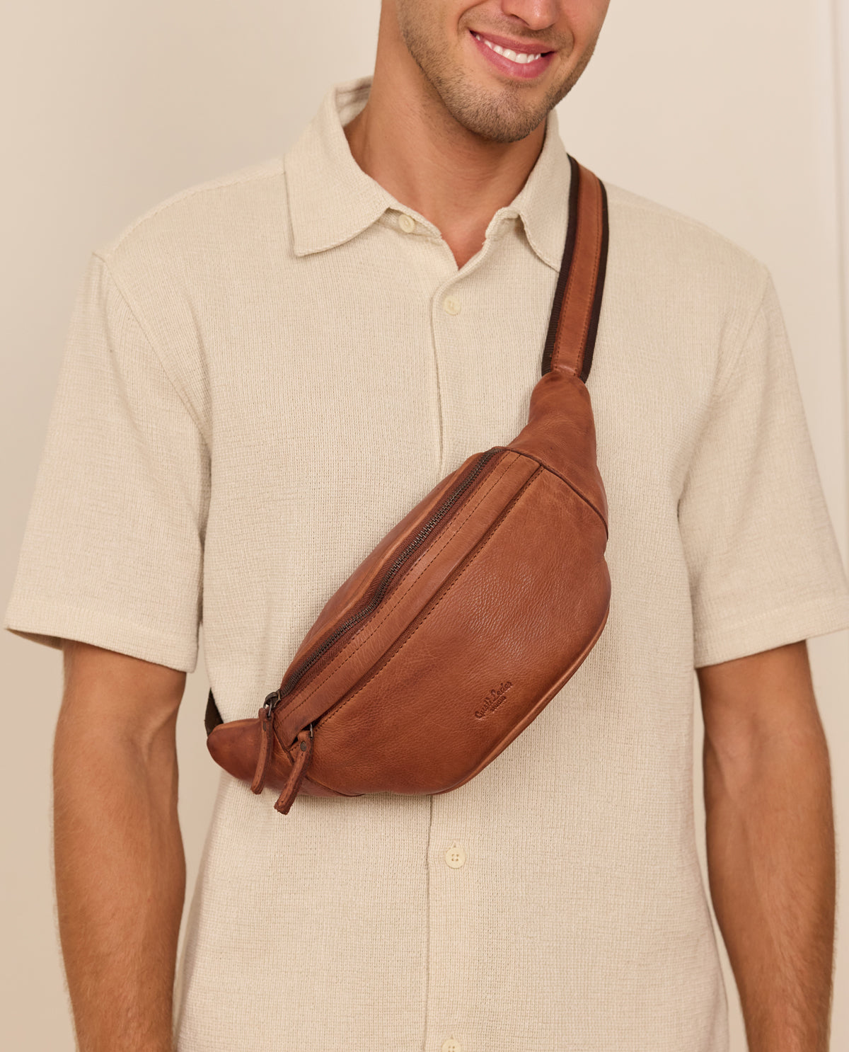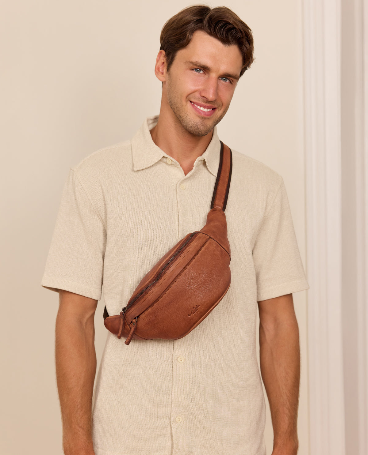 Vår belteveske "Spencer" gjør ikke mye oppstyr rundt seg selv, men overbeviser med sitt reduserte uformelle utseende, sin kvalitet og sin funksjonalitet. Det robuste og høykvalitets bearbeidede kuskinnet gir beltevesken nødvendig formstabilitet, mens dens mange glidelåslommer gir nok plass til dine nødvendigheter, uten hvilke du på alle festivalene eller bare i det nattlige bylivet rett og slett ville vært fortapt. Den erfarne festivalgjest og den lidenskapelige konsertbesøkeren vil vel vitende sette pris på kvalitetene til "Spencer". For lommebok, smarttelefon og nøkler passer helt problemfritt inn - og enda litt mer. Den lengdejusterbare beltet på denne bum bag er dessuten utstyrt med en stabil klikk-lås, slik at du kan bære "Spencer" enten rundt hoften eller som en cross body-bag. Fritt etter mottoet: "Spencer" er ukomplisert. "Spencer" er praktisk. "Spencer" er rett og slett bra.
