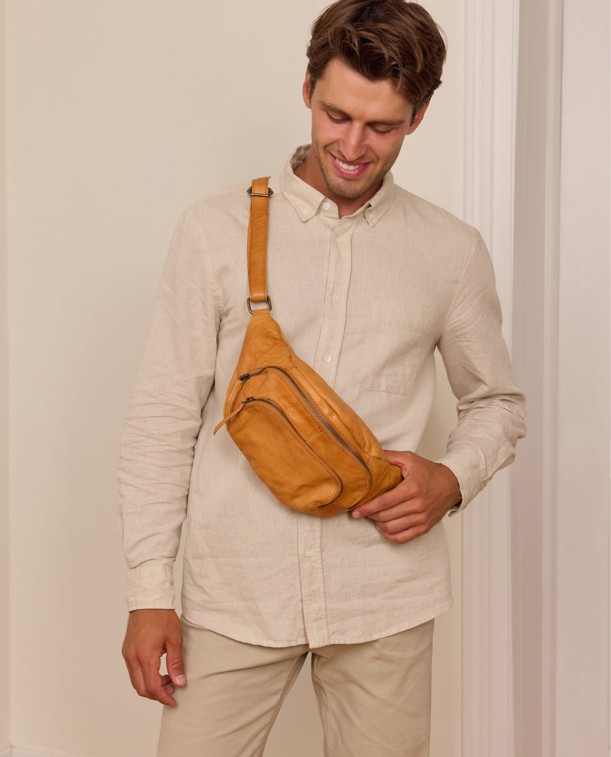Du suchst noch eine coole Bauchtasche für die nächste Festivalsaison, eine praktische Aufbewahrungsmöglichkeit für Snacks auf der Piste oder einfach eine kleine Tasche, in der du deine Sachen beisammen halten kannst? Dann bist du bei "Sverre" auf jeden Fall richtig! Die coole Vintageoptik macht die Tasche aus robustem Rindsleder definitiv zu etwas besonderem, so siehst du immer gut gestylt aus. Im großen Hauptfach kannst du deine Habseligkeiten großzügig unterbringen. An der Vorderseite findest du noch zusätzlich zwei kleinere Taschen, die du ebenfalls mit einem Reißverschluss verschließen kannst. Das Coachella kann kommen! Aber auch im Winter macht er auf Konzerten eine gute Figur und nimmt mühelos Portemonnaie, Schlüssel und Smartphone für dich mit! So kannst du ganz gedankenlos tanzen und die Musik genießen, deine Sachen sind sicher.