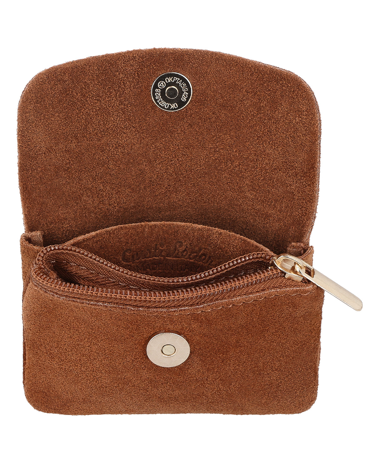 Aufbewahrungstasche Geldbörse Portemonnaie Geldbeutel Organizer klein Ledertasche Damen Hellbraun Leder - Made in Italy