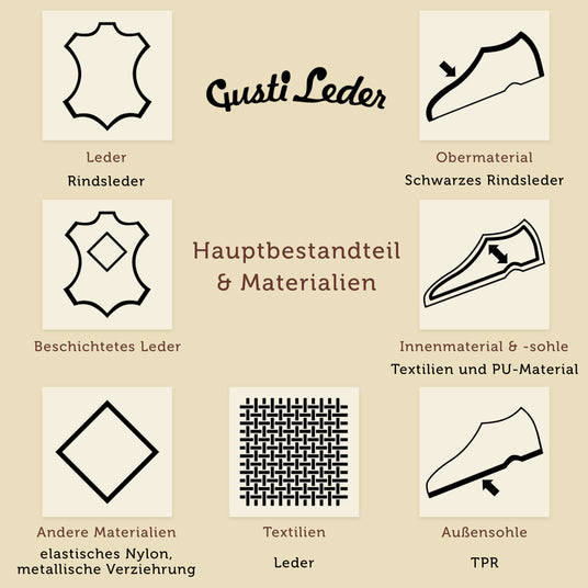 Für jedes unserer Schuhe findest Du eine Tabelle wie diese, die deren Zusammensetzung zusammenfasst.
