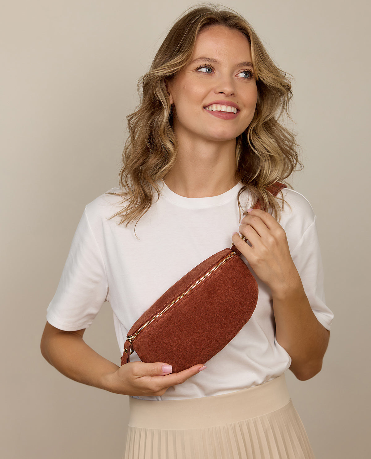 Gürteltasche Bauchtasche Umhängetasche Crossbody Tasche Ledertasche Damen Braun Leder - Made in Italy