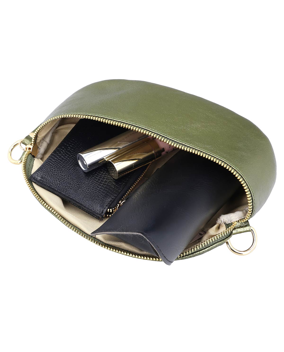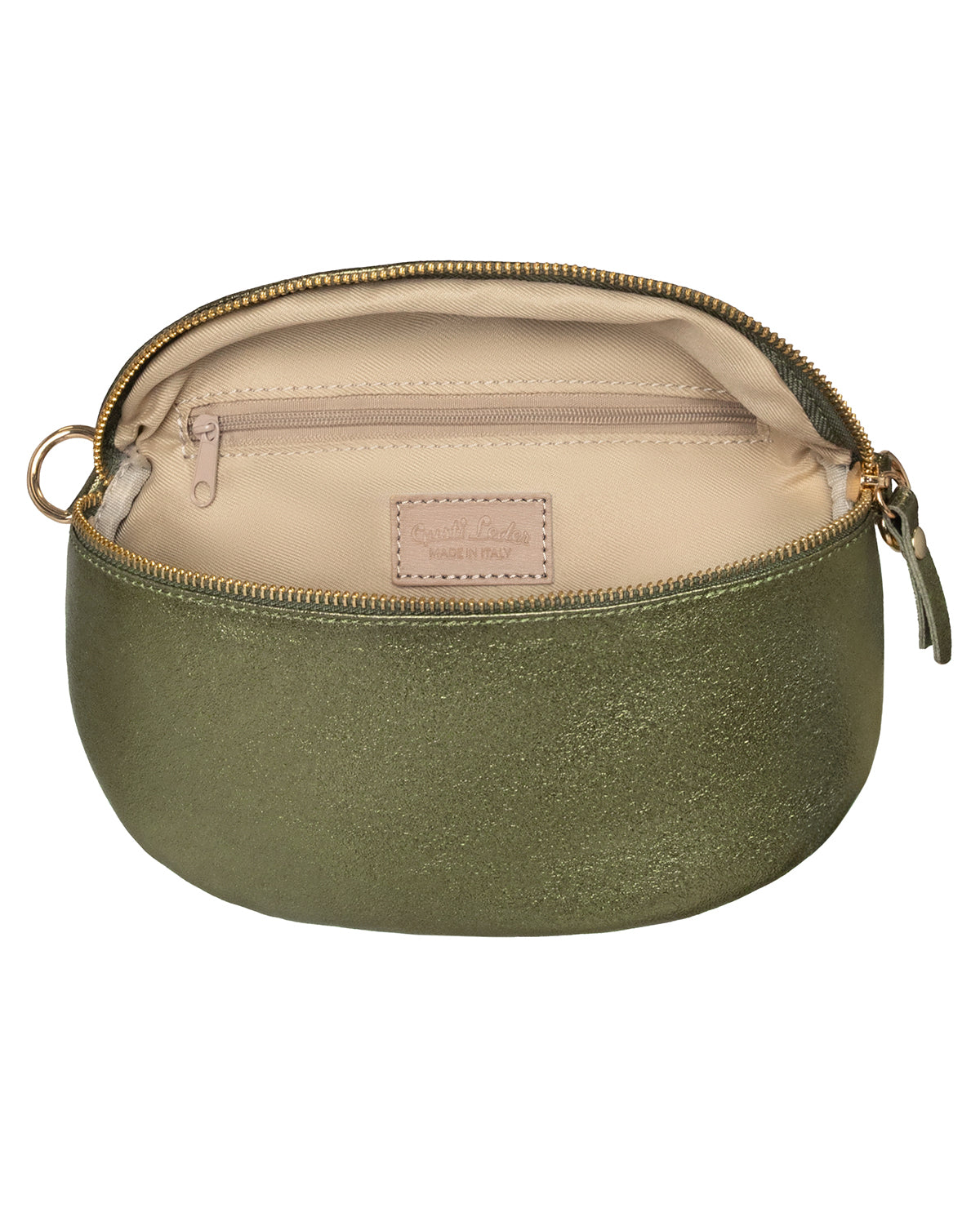 Die "Brinja" Umhängetasche besticht durch ihr elegantes Design und ihre hohe Funktionalität. Mit der markanten, halbrunden Silhouette und dem vollständigen Reißverschluss entlang des oberen Randes bietet sie nicht nur ausreichend Platz für Deine Essentials, sondern auch Sicherheit für all Deine persönlichen Gegenstände. Das hochwertige Leder verleiht ihr eine edle Optik, die sich perfekt in Deinen modernen Alltag einfügt. Im Inneren findest Du zudem das fein eingeprägte "Made in Italy"-Logo, das die Herkunft und Qualität dieser Tasche eindrucksvoll unterstreicht.