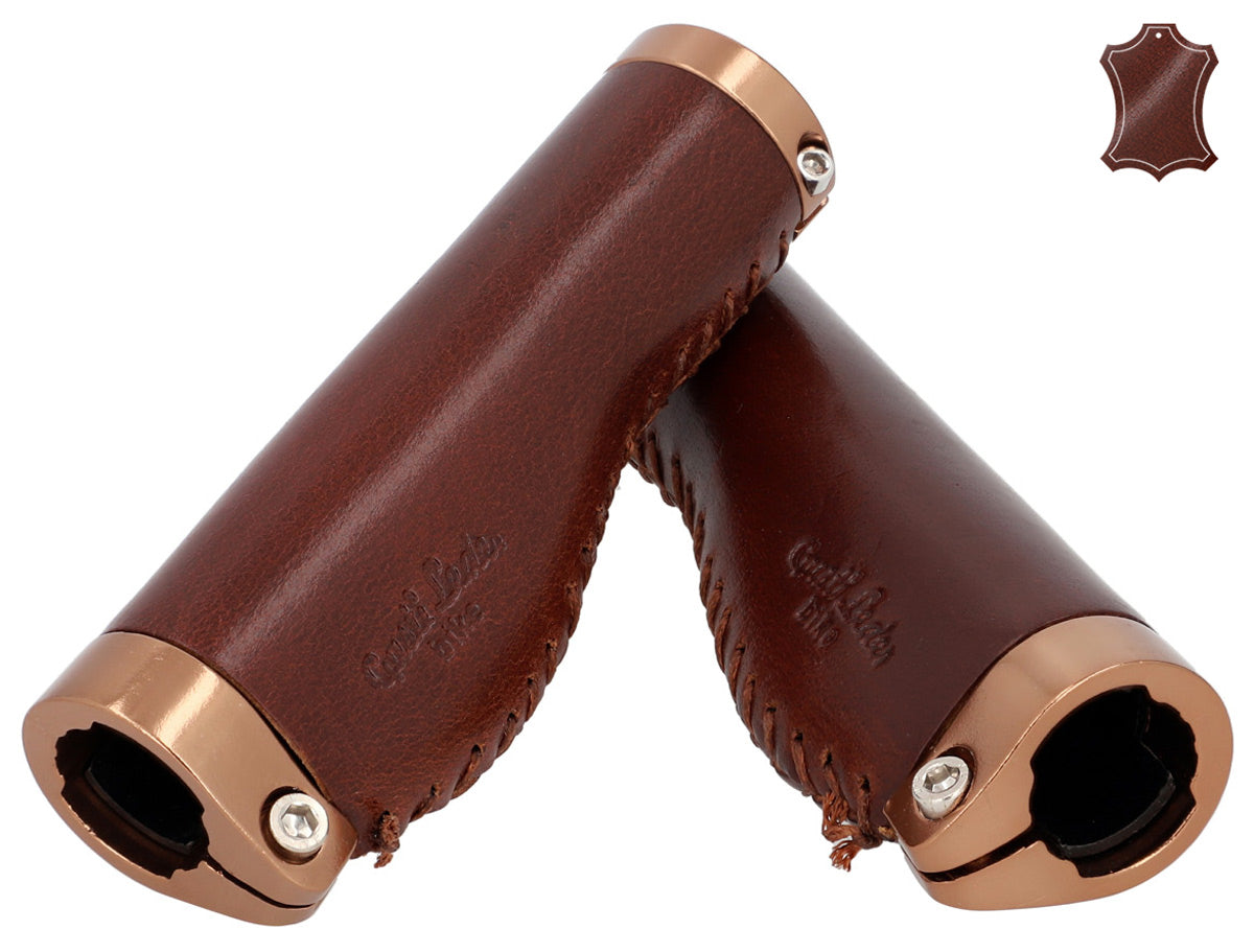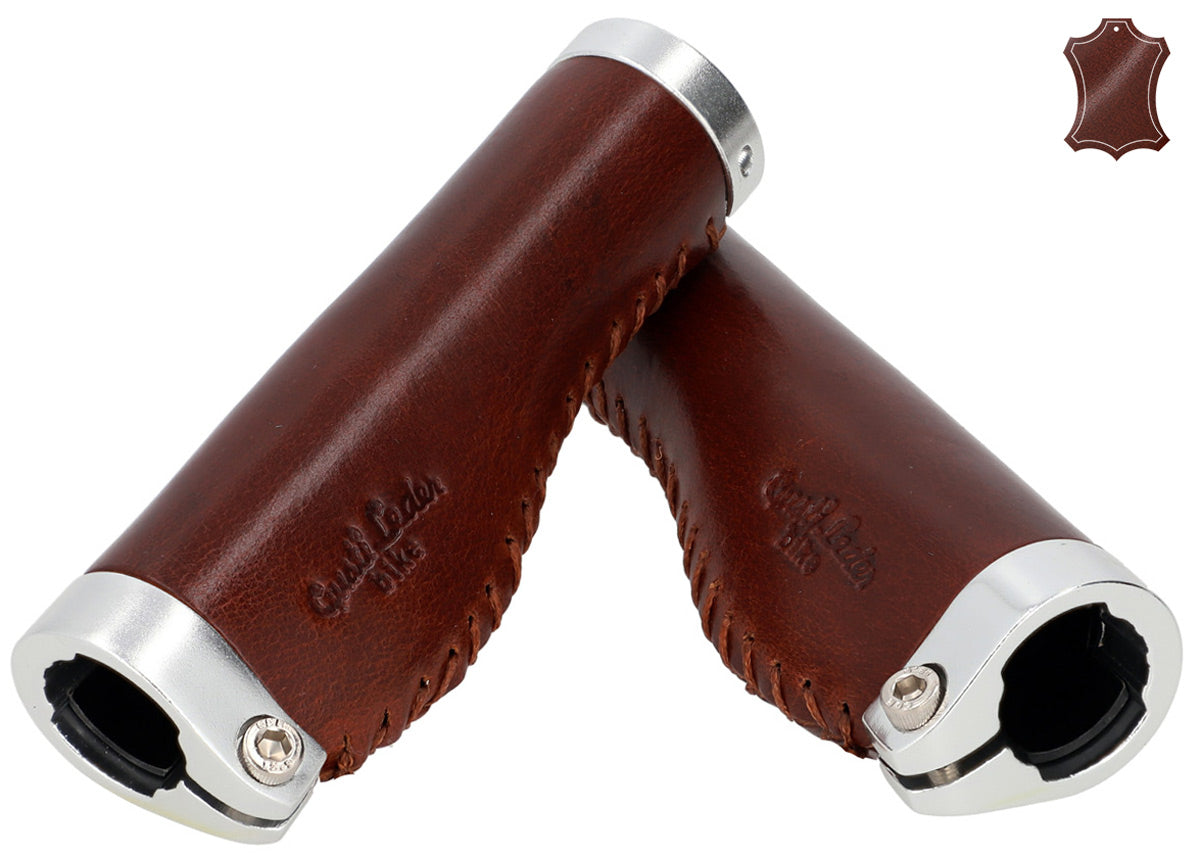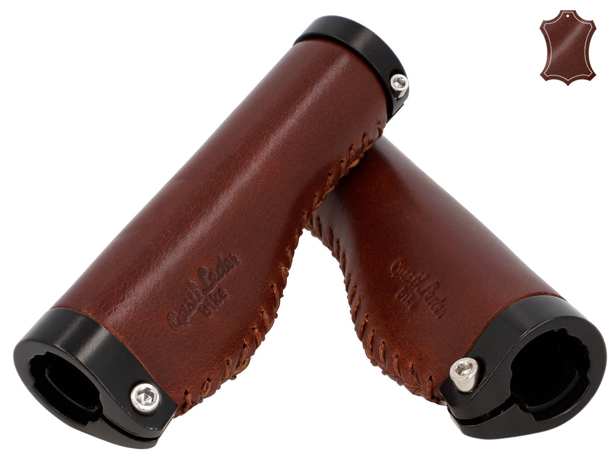 Die ledernen Lenkergriffe "Phil A." passen optisch ebenso hervorragend zu einem trendigen Single-Speed-Rad wie zum klassischen Holland-Bike und lassen sich kinderleicht montieren. Ihr hochwertiges Materialmix aus farbigem Aluminium und 100% Echtleder sorgt für hervorragenden Grip und ein konstant gutes Lenkverhalten. Gleichzeitig passen sie sich ideal der Anatomie Deiner Hände an, federn Stöße und Vibrationen ab und erhöhen so die Griffsicherheit. Nach einer kurzen Einfahrzeit wirst Du den spürbaren Komfort und die angenehme Haptik dieser Griffe nicht mehr missen wollen.