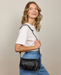 Umhängetasche Handtasche Ledertasche Vintage Damen Schwarz Leder