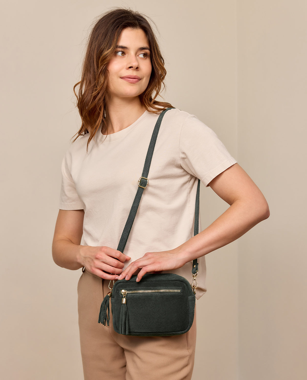 Die "Cariba" Umhängetasche aus hochwertigem Leder ist der ideale Begleiter für jede Frau, die sowohl Stil als auch praktischen Nutzen schätzt. Mit ihrem sicheren Reißverschluss kannst Du Deine Wertsachen sicher aufbewahren, während der elegante Anhänger am Reißverschluss der Tasche einen besonderen Akzent verleiht. Ihre schlichte, aber auffällige Optik macht sie zum perfekten Accessoire für den Alltag und besondere Anlässe. "Cariba" vereint edles Design mit durchdachter Funktionalität – ein Must-have für jedes Outfit.