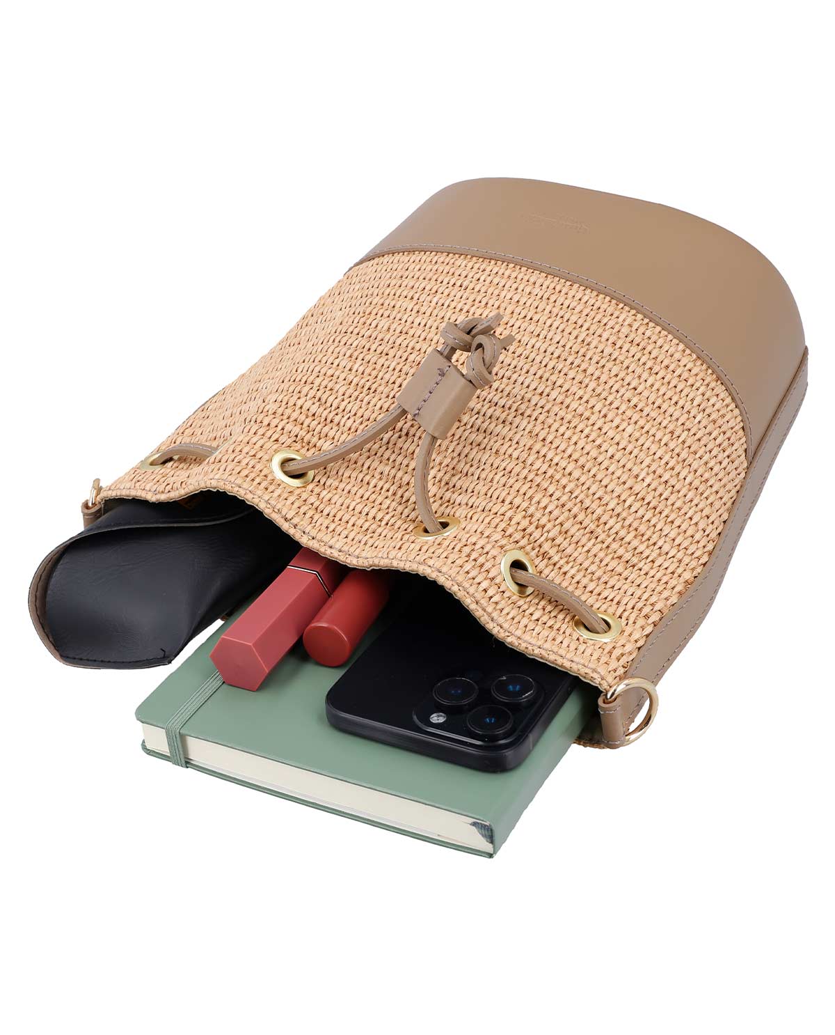 Die "Nuria" Beuteltasche ist die perfekte Kombination aus zeitloser Eleganz und praktischer Funktionalität. Ihr fein gewobenes Raffia-Material verleiht der Tasche eine natürliche Leichtigkeit. Raffia ist ein pflanzliches Material, das aus den Blättern einer Palme gewonnen wird. Es ist besonders bekannt für seine Robustheit und leichte Textur. Zusammen mit dem glatten Lederboden und den Lederakzenten sorgt es für Langlebigkeit und Stabilität. Diese Tasche ist nicht nur ein echter Hingucker, sondern auch unglaublich vielseitig und passt sich perfekt Deinem Alltag an. Dank des goldfarbenen “Gusti Leder Made in Italy”-Logos erhält die Tasche zusätzlich einen edlen Akzent, der den modernen Vintage-Look unterstreicht.