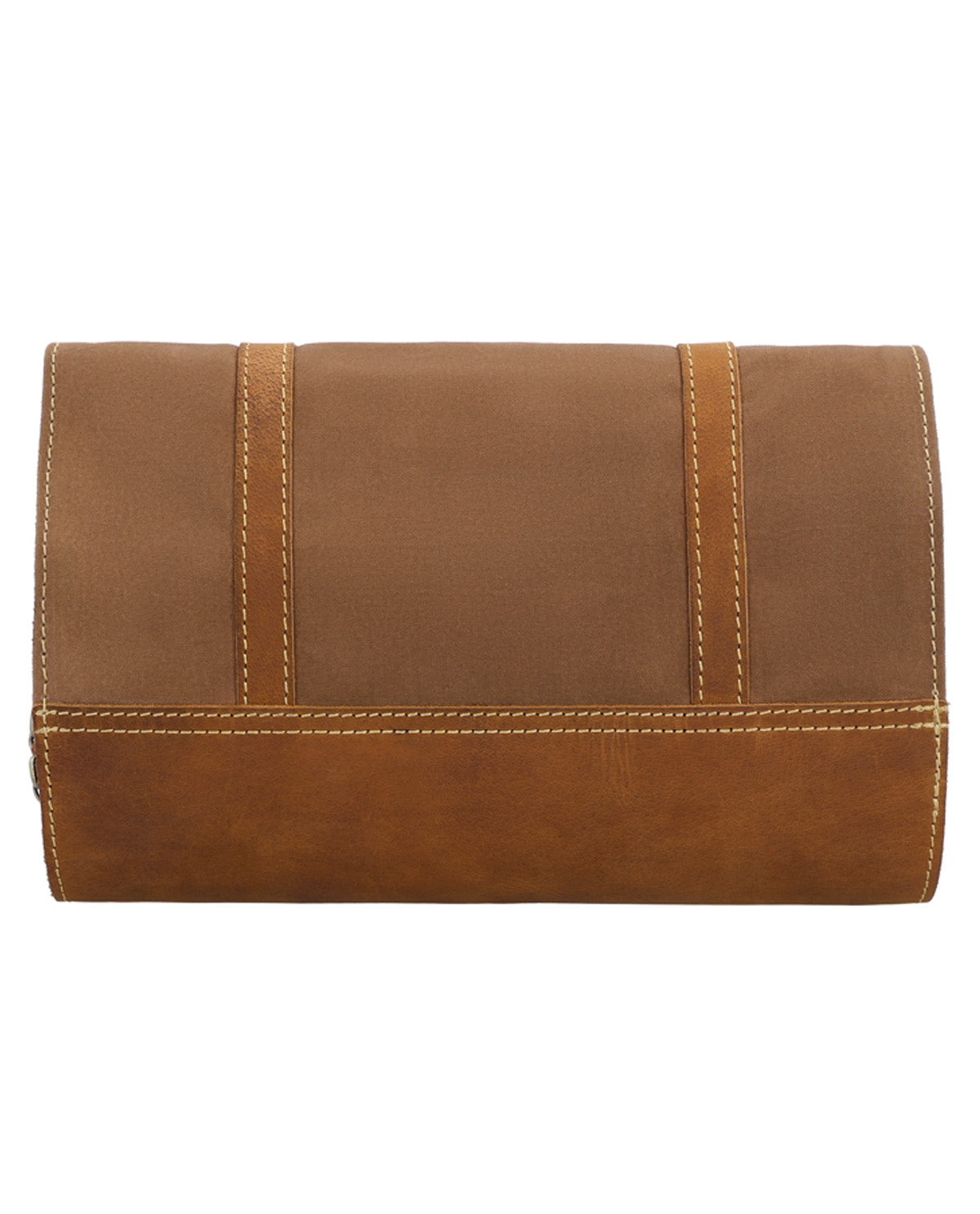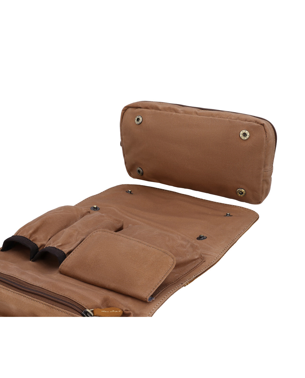 Einmal aufgeklappt kommt dann das große Staunen. Bei "Rodney" wurde wirklich an alles gedacht: So kommt er aus einem hochwertigen Materialmix aus Canvas Webstoff und Büffelleder daher. Innen hat er diverse Fächer in verschiedenen Größen und Formaten für deine Zahnbürste, Shampoos, Bürste, Rasierzubehör, Kosmetik uvm.Dabei verhindert der Innenstoff aus wasserfestem Polycotton kleine Malheure durch ausgelaufene Shampooflaschen. Der stabile Metallhaken erlaubt darüber hinaus ein kinderleichtes Aufhängen von "Rodney" an deiner Wand. Die verstellbaren Schnallen und Druckknöpfe vollenden das Design. Kulturbeutel "Rodney" - ein echter Sorglosmacher eben!
