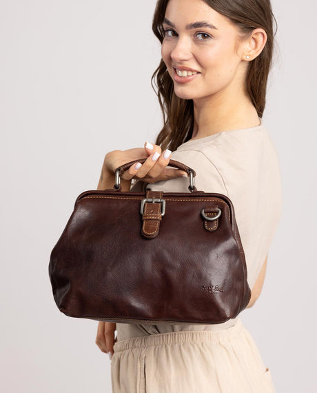 Goatskin handbags are initially somewhat stiffer, but with regular use, they quickly become very supple and soft. Our models made of cowhide or buffalo leather, on the other hand, are somewhat more durable than goatskin bags due to the naturally stronger material. Even after some time, this leather still feels somewhat firmer in structure, although these handbags will naturally become more supple. So, the decision as to which leather best meets your needs for your new leather handbag is entirely up to you.