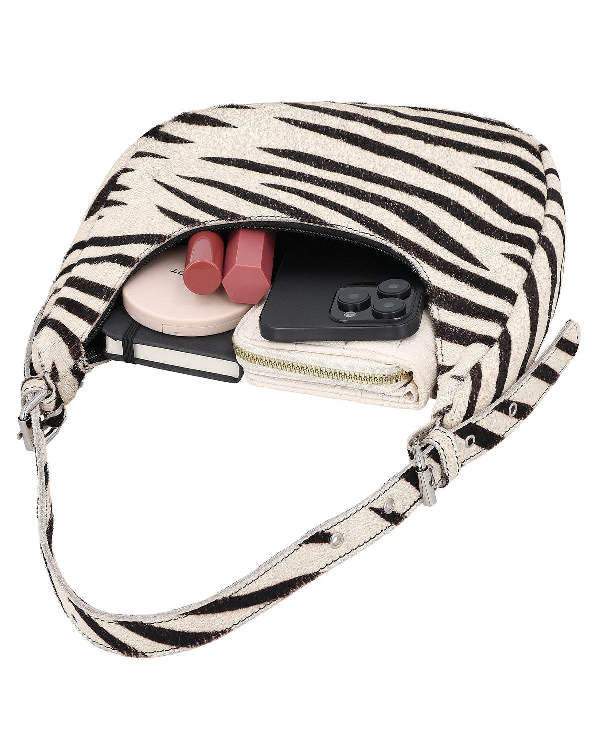 The small "Heike" handbag is a leather handbag for women who love bold patterns and want to emphasize their style. The striking zebra print gives this leather bag an expressive, modern look and creates deliberate contrasts with simple outfits. Despite its compact size, "Heike" is both striking and stylish – ideal for days or evenings when you only want to carry the essentials. This leather handbag combines a fashion statement with everyday practicality and emphasizes your individual look.