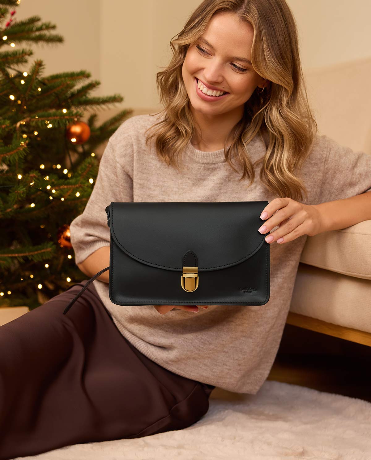 This classic handbag has two compartments inside where you can keep your belongings safe during the day and on big nights out. There's even space for your favourite book. Take our elegant shoulder bag “Zoey” to your next party. The gold fastener is easy to use and completes “Zoey's” sophisticated vintage look.