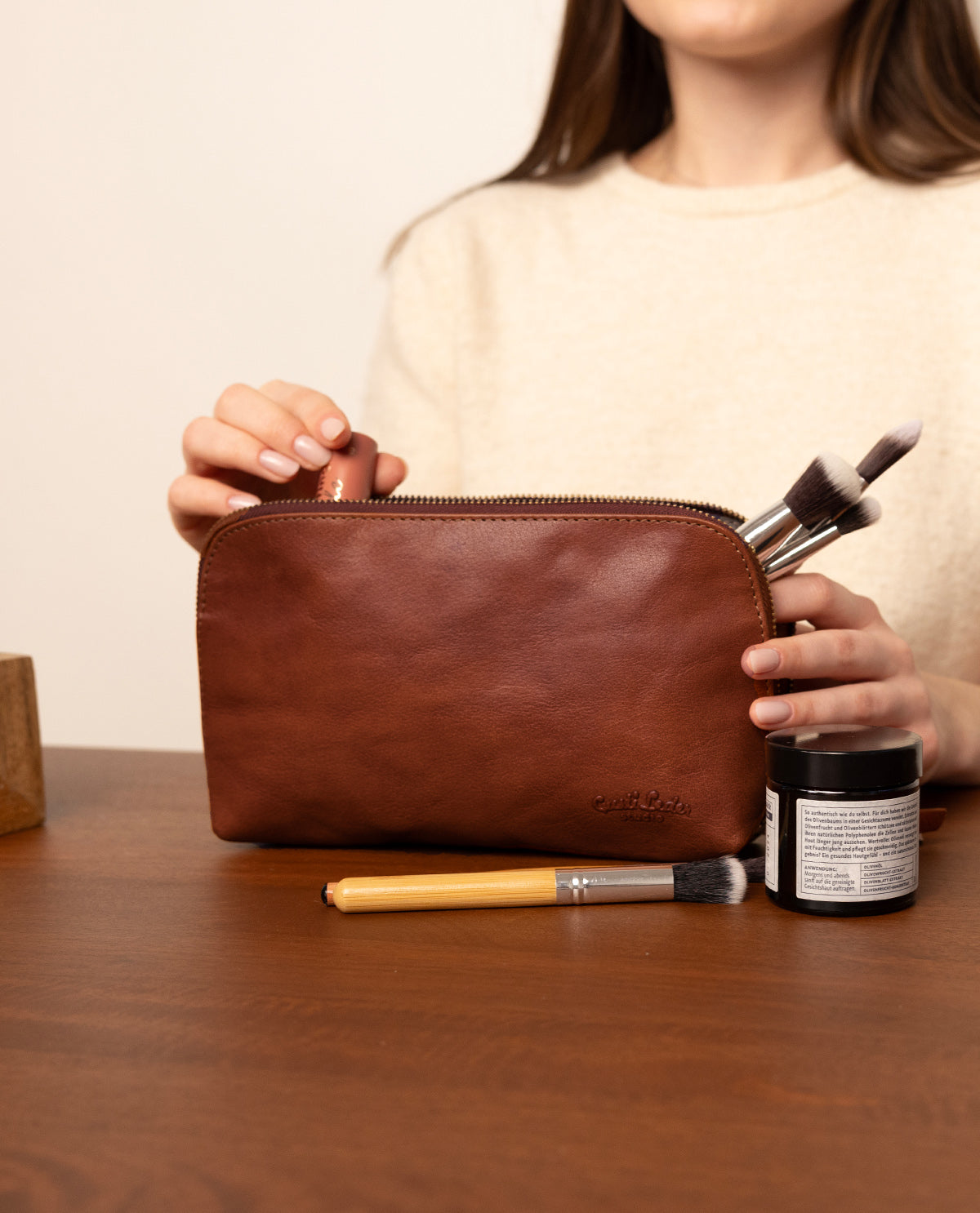 "Eli" is also versatile and ideal as a gift for your loved ones! The spacious one main compartment keeps all items securely in place, while the sturdy zipper ensures that nothing falls out. Want to make "Eli" even more personal? No problem! Inside , there is an extra leather patch where you can have a name or dedication engraved. Our products are manufactured in accordance with the strictest environmental and labor standards, so when you buy them, you are not only investing in quality, but also taking responsibility for sustainable and ethical production.