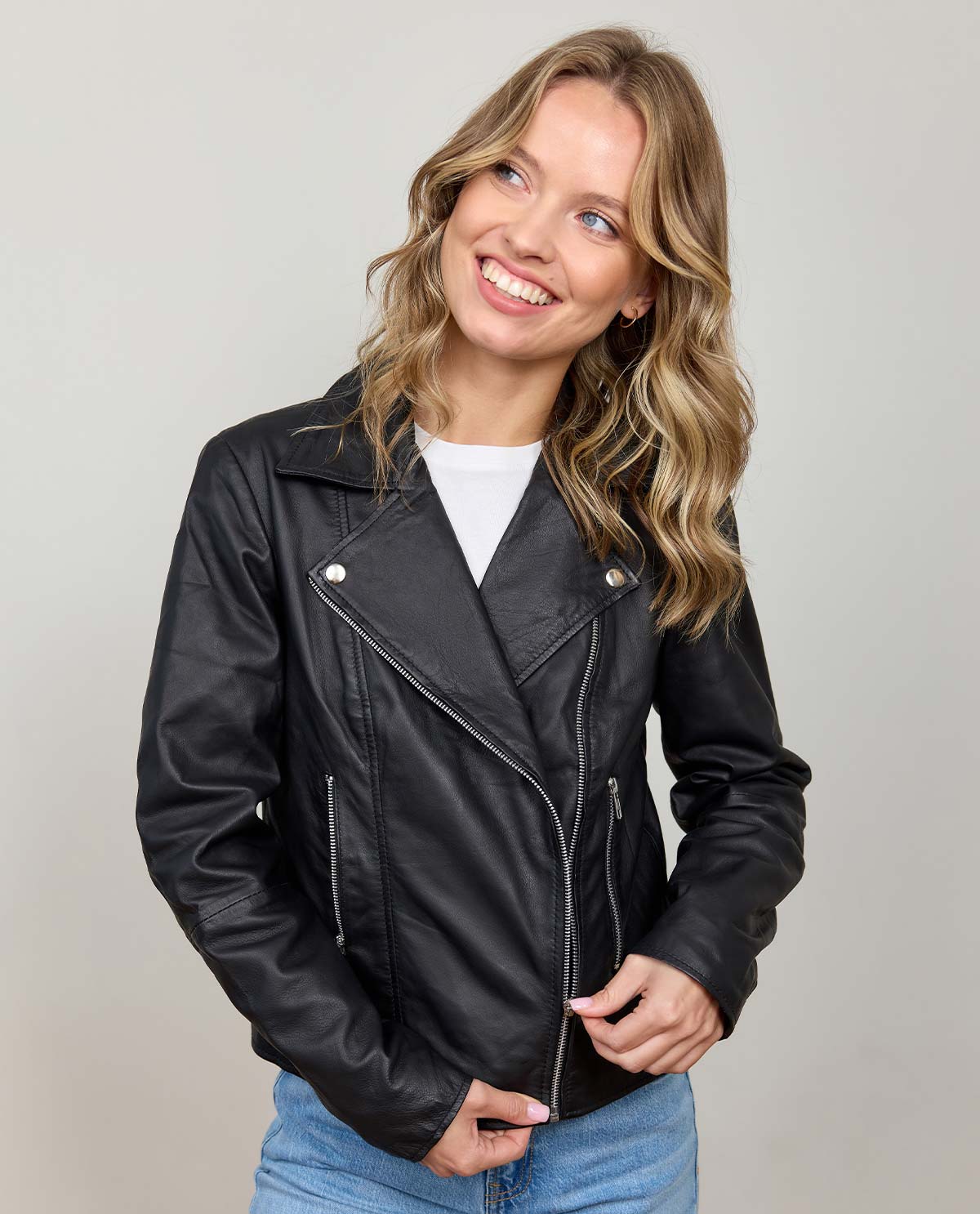Skinnjakke Bikerjakke Jakke Ekte skinn Dame Svart Skinn