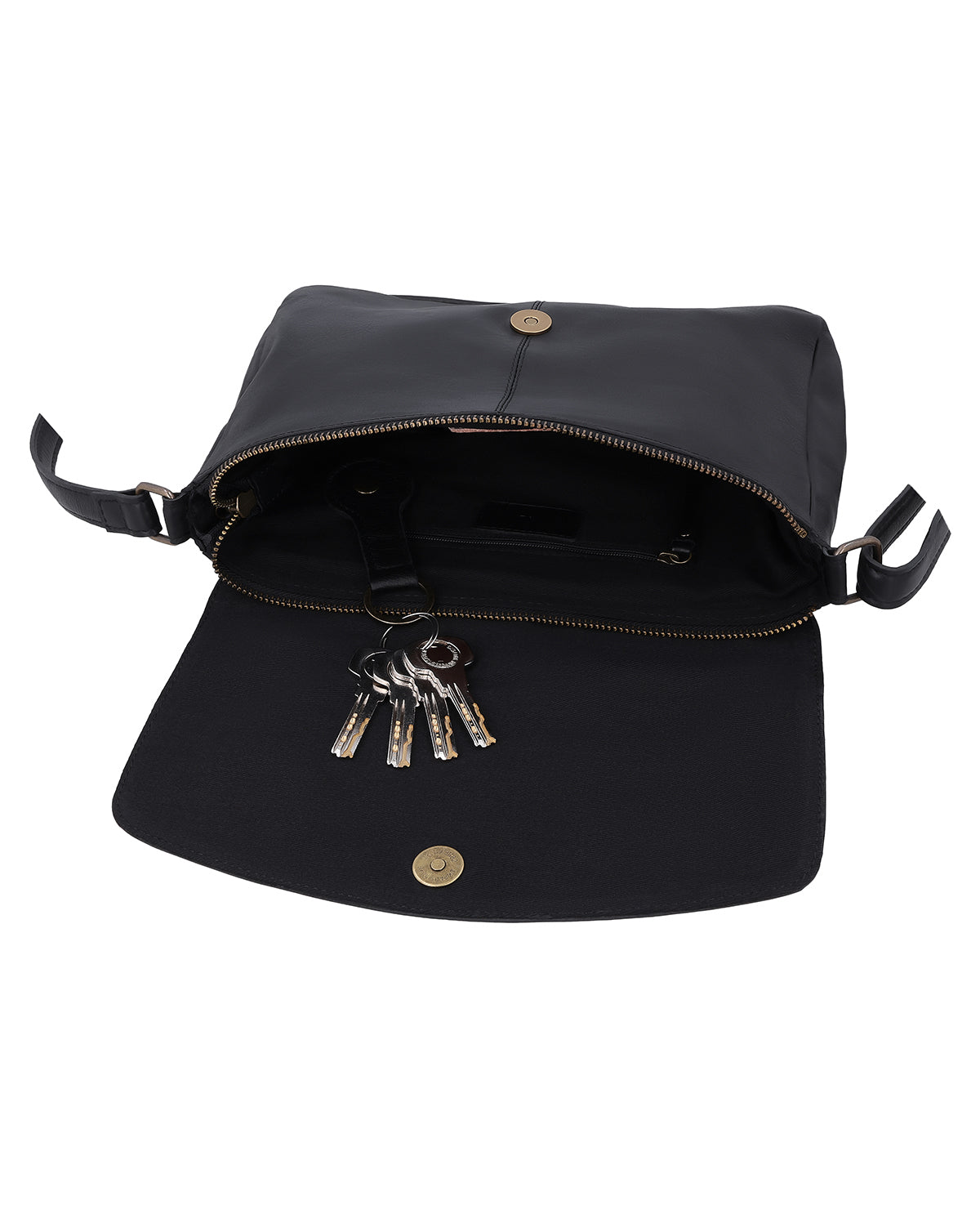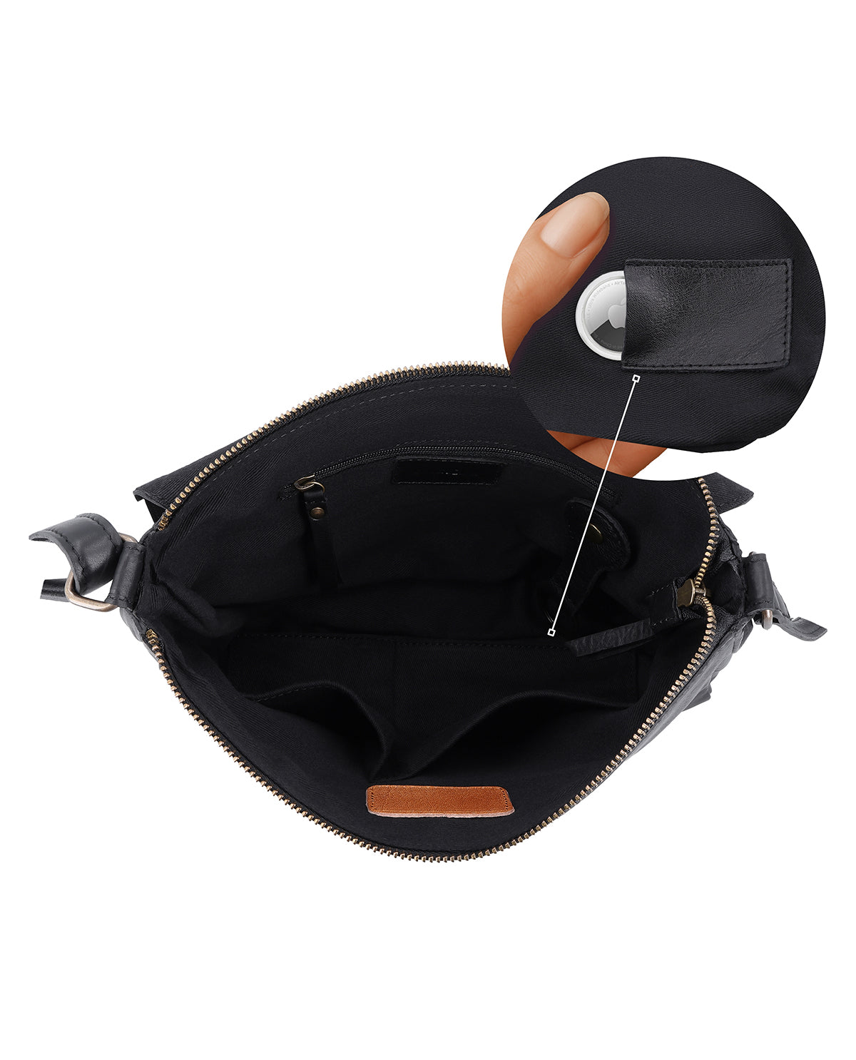 The "Maisie" handbag offers enough space for all your important items. Whether it's your smartphone, wallet, or makeup – everything has its place. The well-thought-out interior layout ensures that you always have an overview and your essentials are safely stowed away. Particularly practical: a removable key ring and a hidden Airtag compartment so you can find your keys quickly and keep an eye on your favorite item at all times.