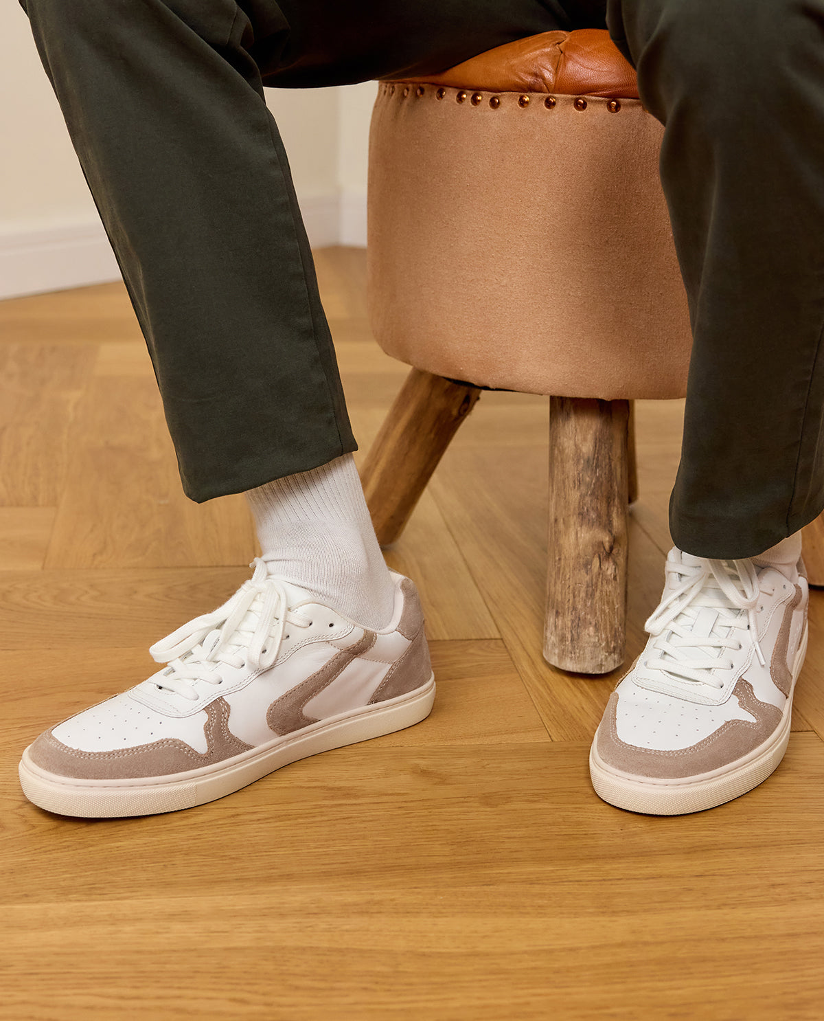 Shoes mens sneakers trainers white brown leather