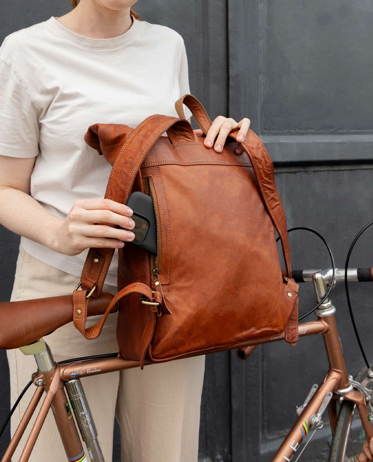 "Milo New" will impress you with its functionality and its thoughtful details. There's a slim zipped pocket on the back where you can keep your smaller belongings safe and secure and the engraving patch and subtle Gusti Leather embossing add a personal touch to the bag.