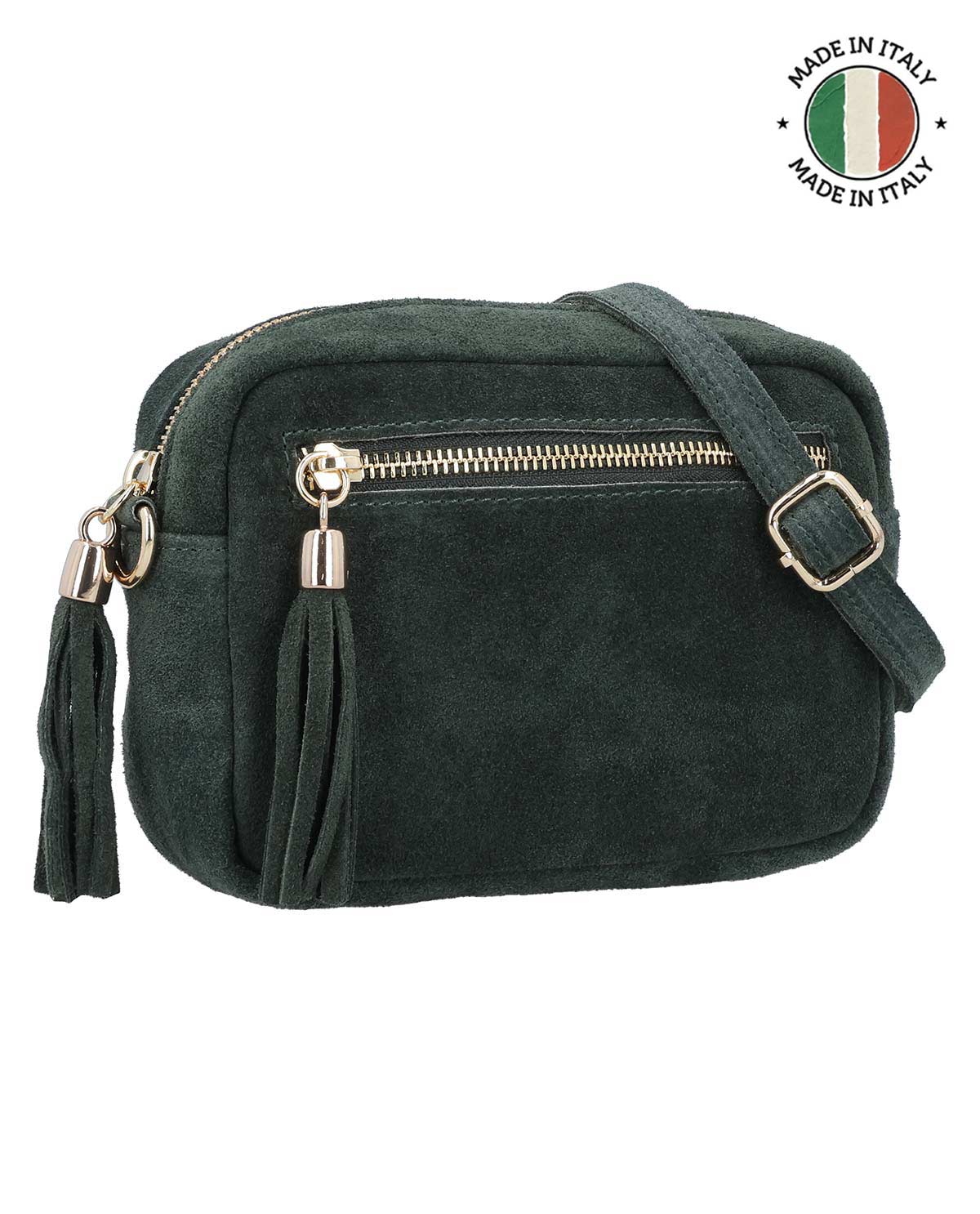 Belt bag bumbag fanny pack crossbody bag womens dark green leather - Made in Italy