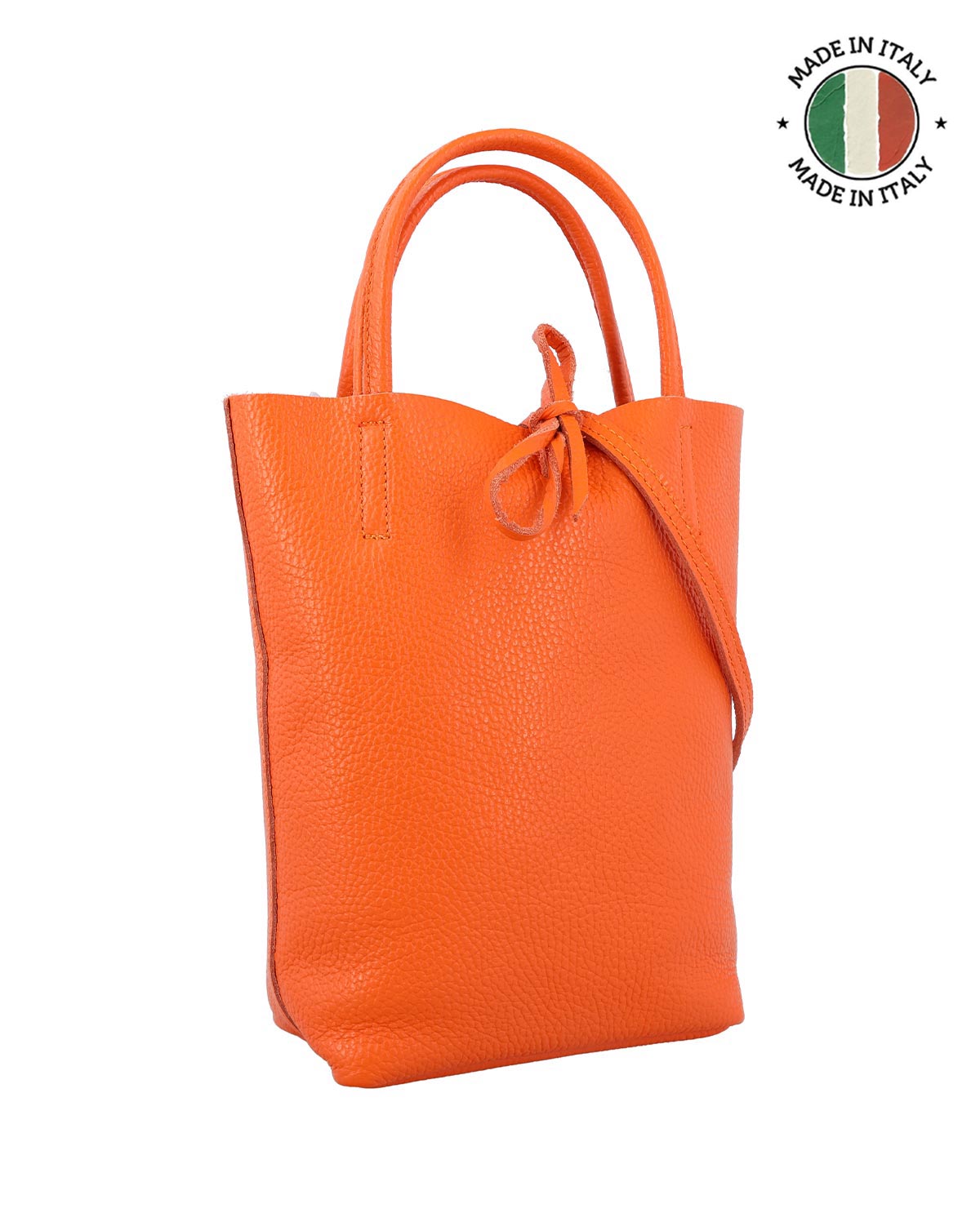 Crossbody bag leather bag shopper handbag women orange leather - Made in Italy
