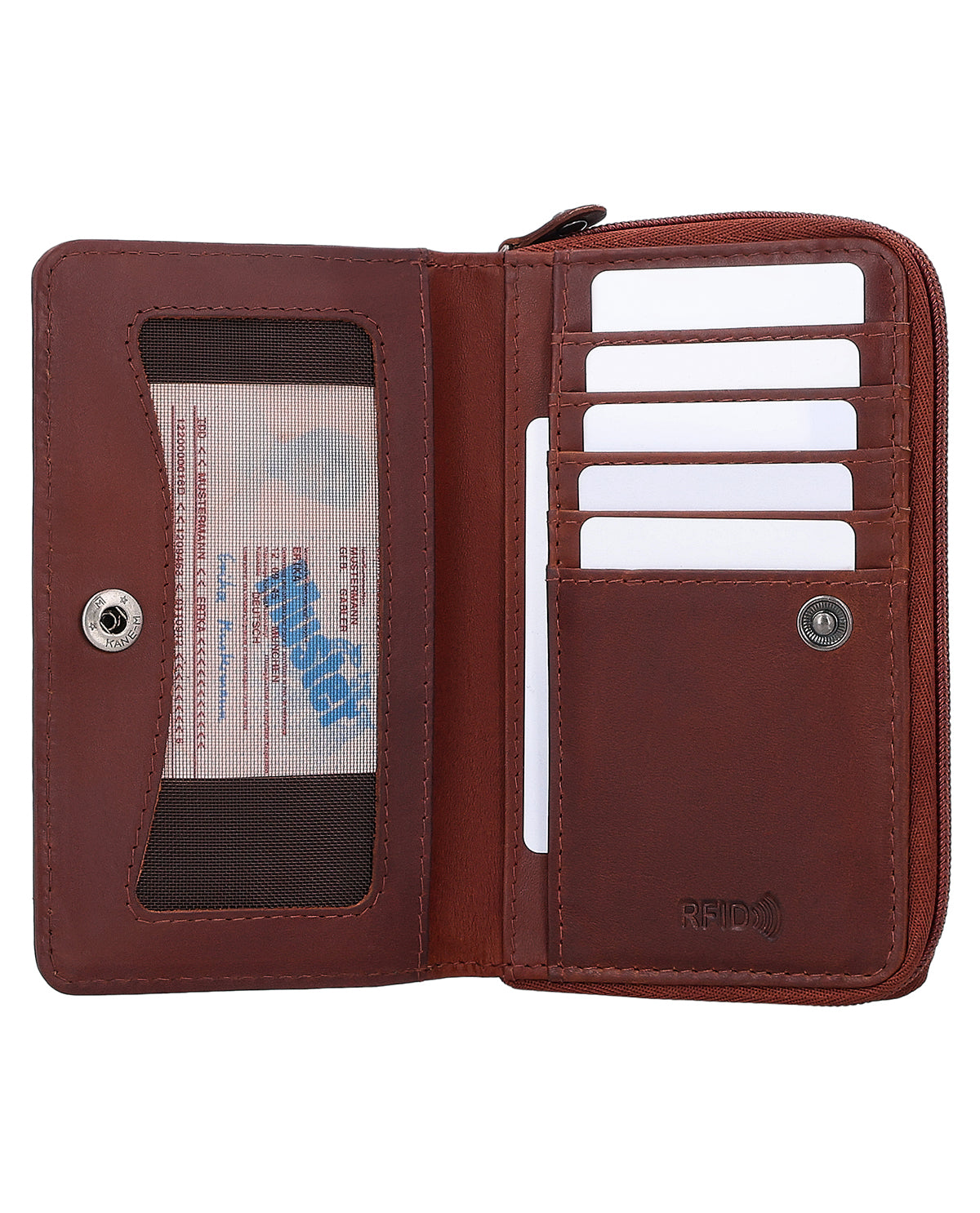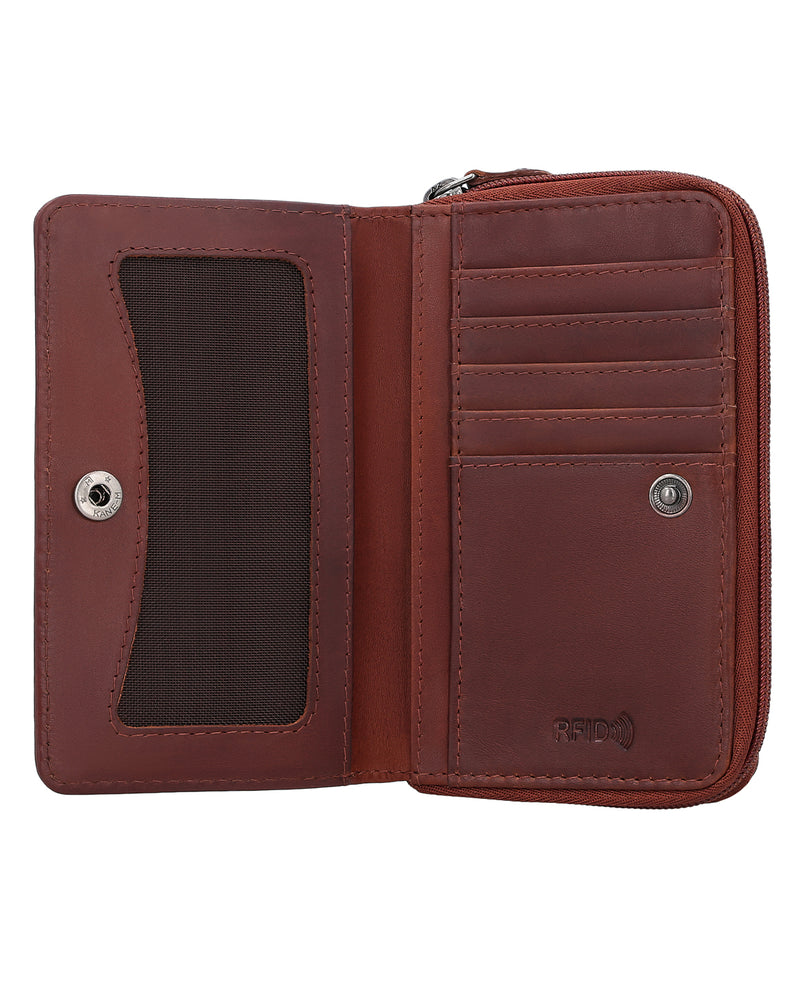 This wallet, made of high-quality, sturdy Cowhide leather , allows you to store up to 17 cards in individual compartments. There are also transparent compartments for your ID card or travel card. The clever organization system inside means you always have everything you need to hand. A separate compartment for a single coin is particularly practical – e.g. for shopping carts or other small situations when you're out and about. The Cowhide leather gives the wallet the necessary strength and dimensional stability, ensuring that you will enjoy the product for a long time. Zippers and snap fasteners prevent anything from falling out of the wallet, giving it the level of security you need in everyday life. Whether for yourself or a loved one