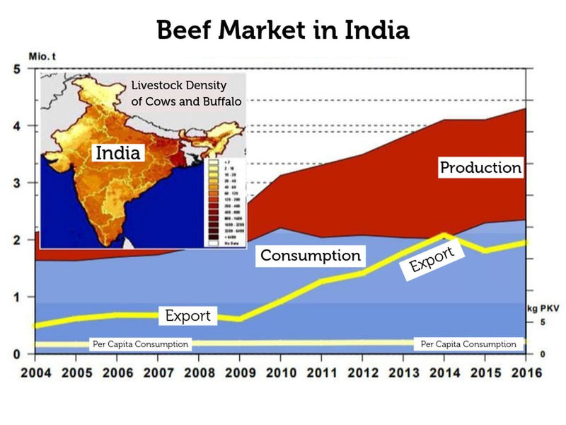 India is now consideredone of the largest beef producers worldwide. For comparison: In the EU, about 8 million tons of beef are produced annually. In India, it is 4.3 million tons of meat. Beef in India is therefore not only consumed but is now also produced on a large scale. Most of India's slaughterhouses are in the south (Chennai) and the north (Uttar Pradesh and Kolkata). Even 50% of the meat for export to Qatar and Saudi Arabia comes from these places. Why? The slaughter of animals follows precise regulations that are rooted in Islam. Only if the meat is“halal”is it eaten in Islamic-influenced places like Qatar.