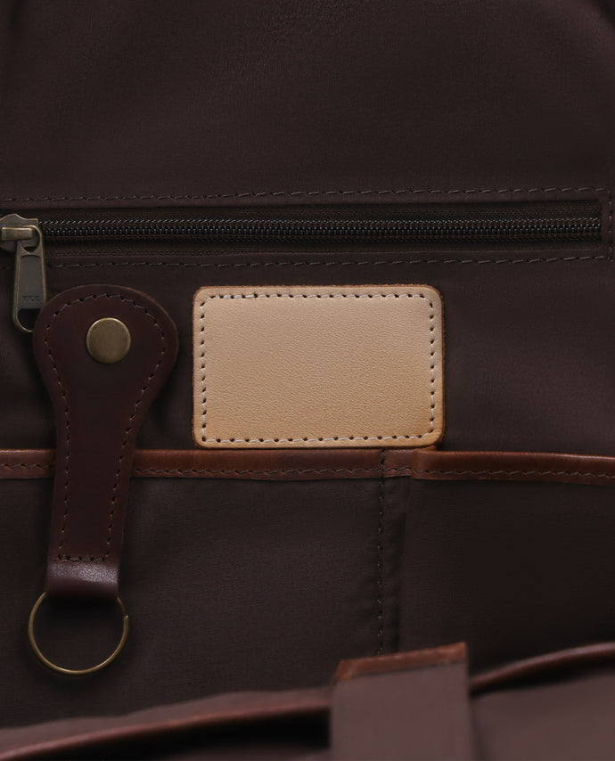 Please note: You can use a total of 30 characters, max. 15 per line. The exact colour of the engraving may vary slightly depending on the product and leather. The white text that you can see in the preview is solely for visibility and contrast, so you can better imagine how your engraving will look. If you only see a patch in the preview, the text of your choice will be engraved on a leather patch that will be sewn inside the bag. If you see the product in the preview, the engraving is positioned as shown in the preview image.