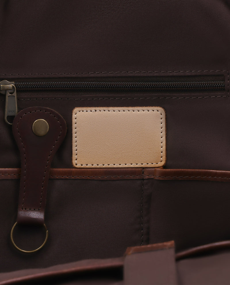 With its adjustable shoulder straps, "Klaas" adapts perfectly to your carrying comfort. The integrated trolley strap makes traveling particularly pleasant, as you can easily attach the backpack to your suitcase. On the outside, you will find another zippered pocket and a practical leather hook for quick access to small items. Inside, the integrated engraved patch adds a personal touch and makes "Klaas" something very special. Whether for work, university, or leisure, this backpack will accompany you reliably and stylishly through every day.