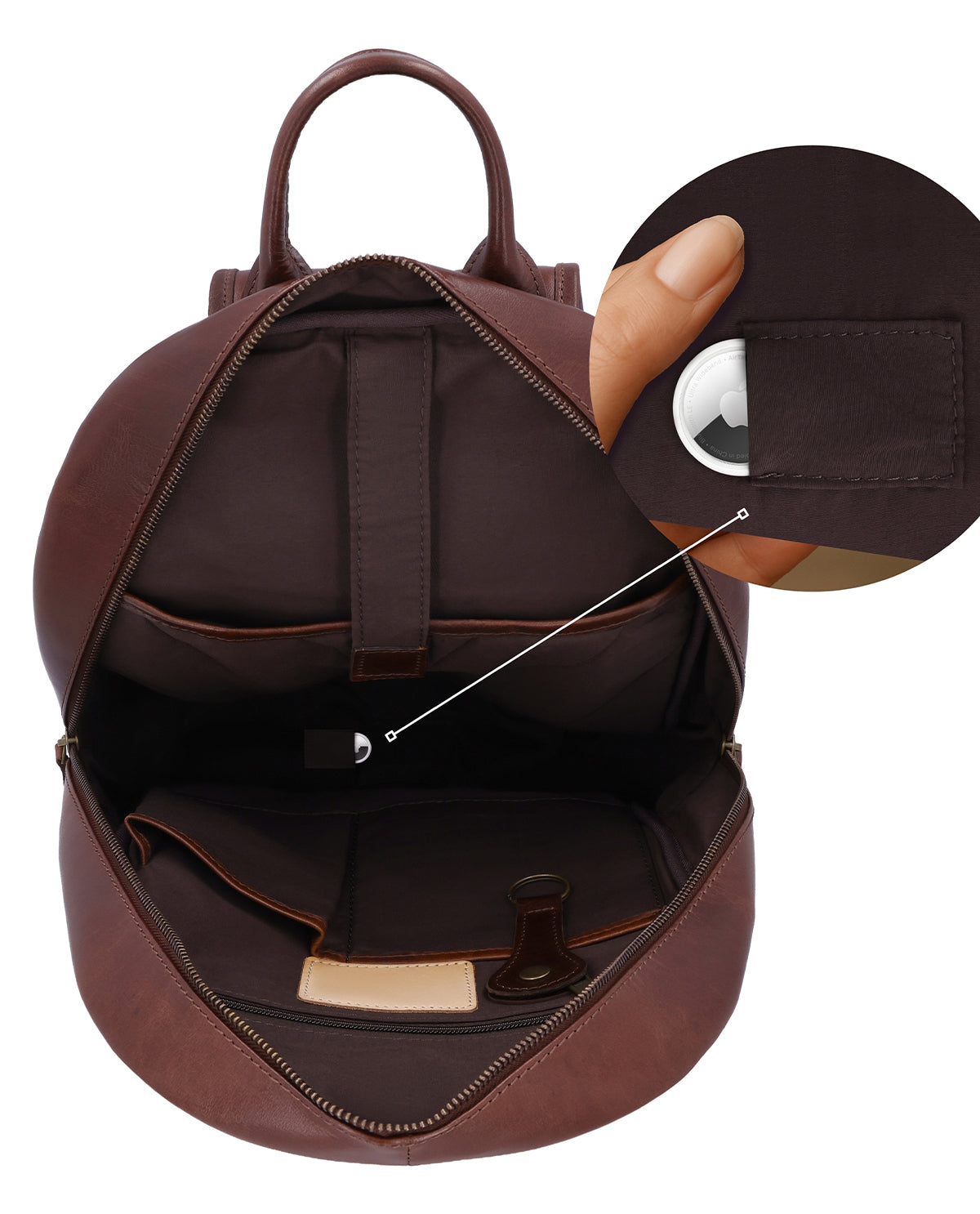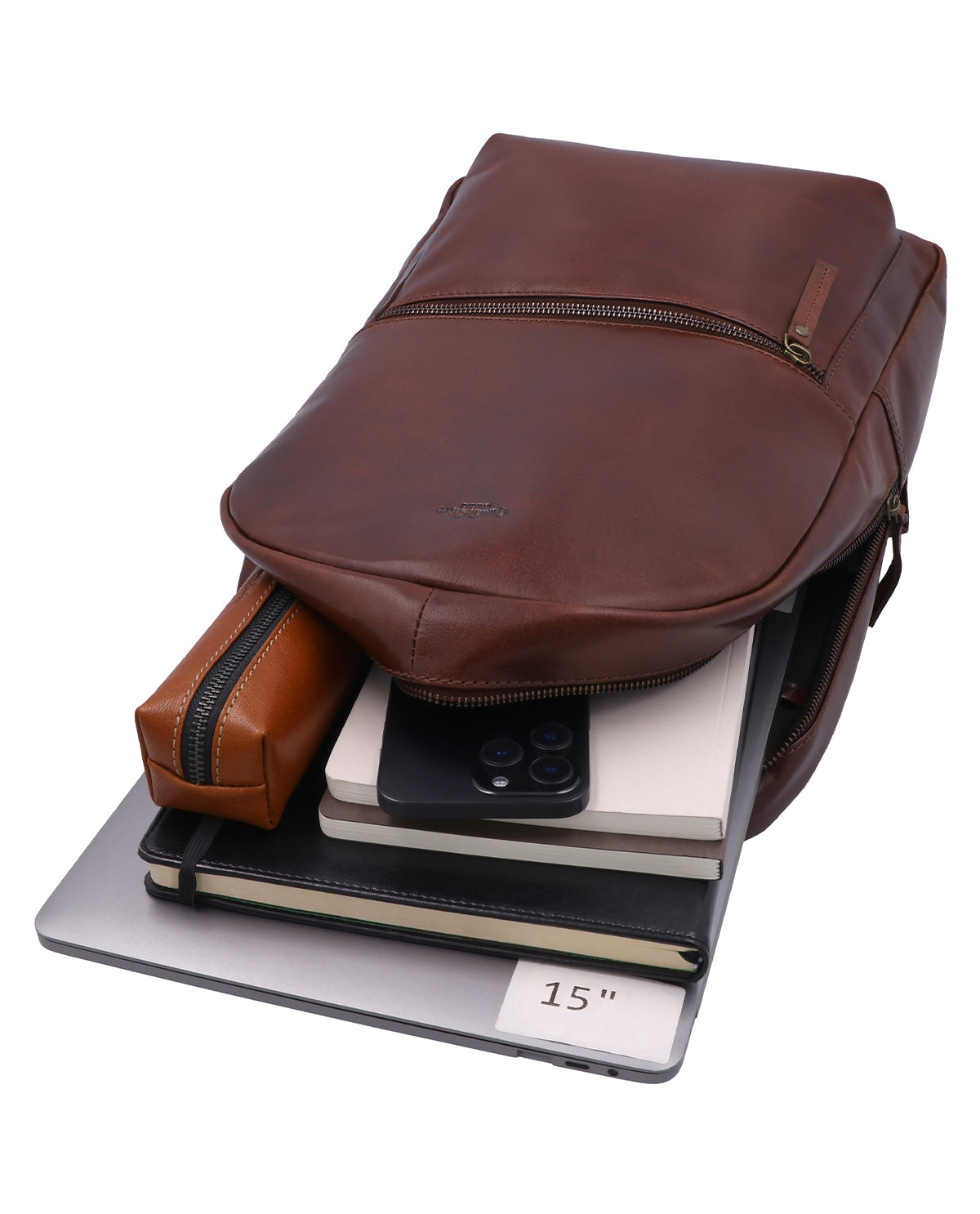 "Klaas" is the ideal companion for your modern everyday life – robust, elegant, and packed with smart details. Made from high-quality leather and equipped with a large main compartment, this backpack offers you enough space for all your important items. The integrated laptop compartment protects your device reliably, while the separate AirTag compartment provides additional security. Thanks to the high-quality metal zipper and the well-designed interior layout, including a zippered compartment and practical key ring, you'll have everything quickly at hand. The reinforced shape and breathable, padded back ensure that you're comfortable on the go at all times.