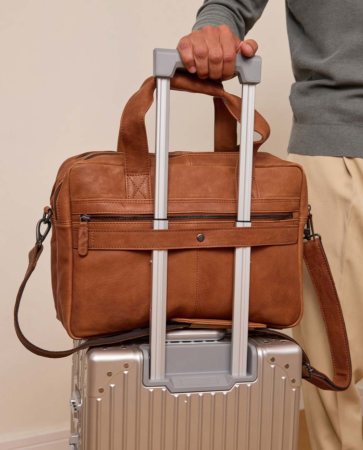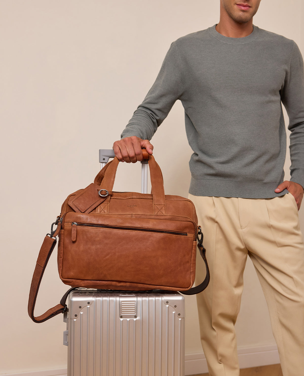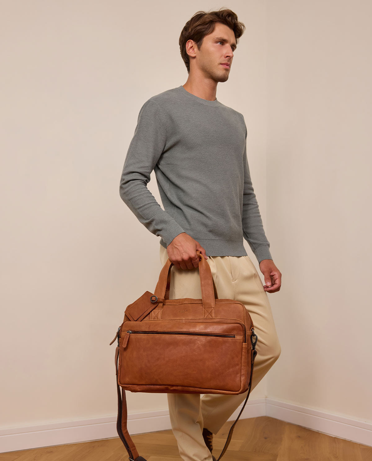 Our briefcase "Alvaro" is the perfect business bag for those who want to combine elegance with functionality. This premium brown leather bag adds a timeless and professional touch to your look. Its thoughtful design and spacious storage make it the perfect work bag for meetings, travel, or daily use at the office. You’ll always have a clear overview of your documents and belongings thanks to the dual zipped compartments.
