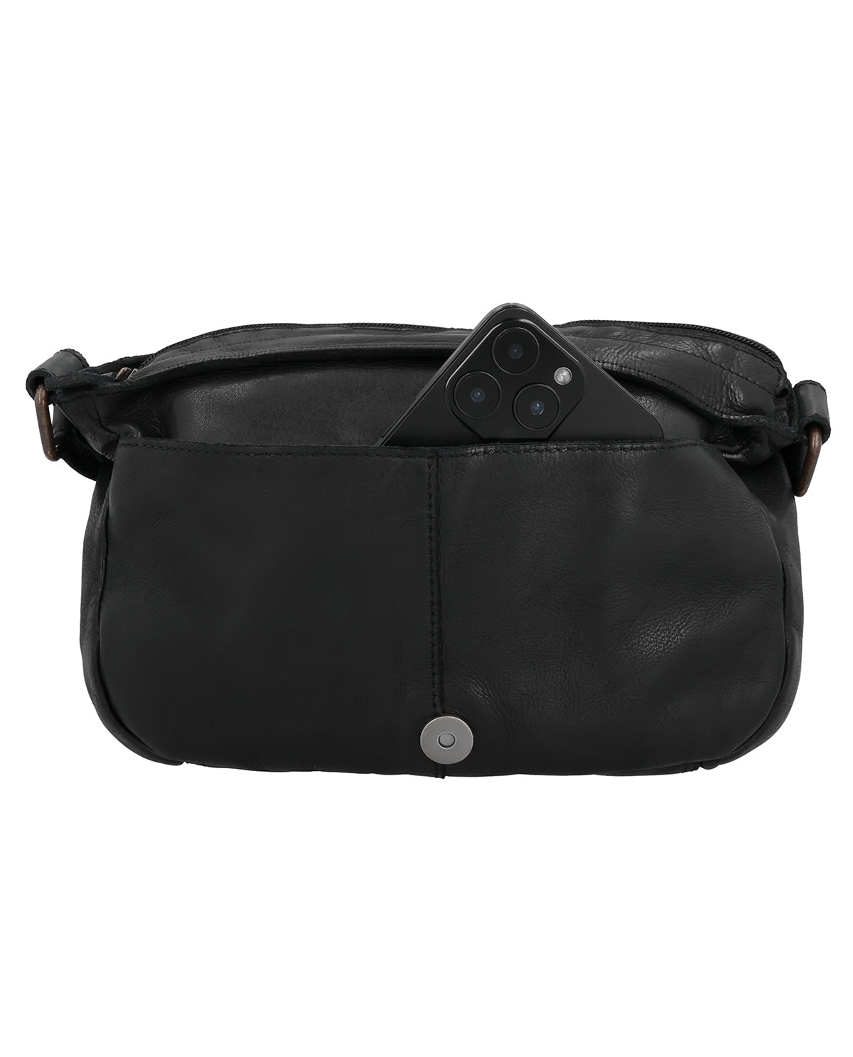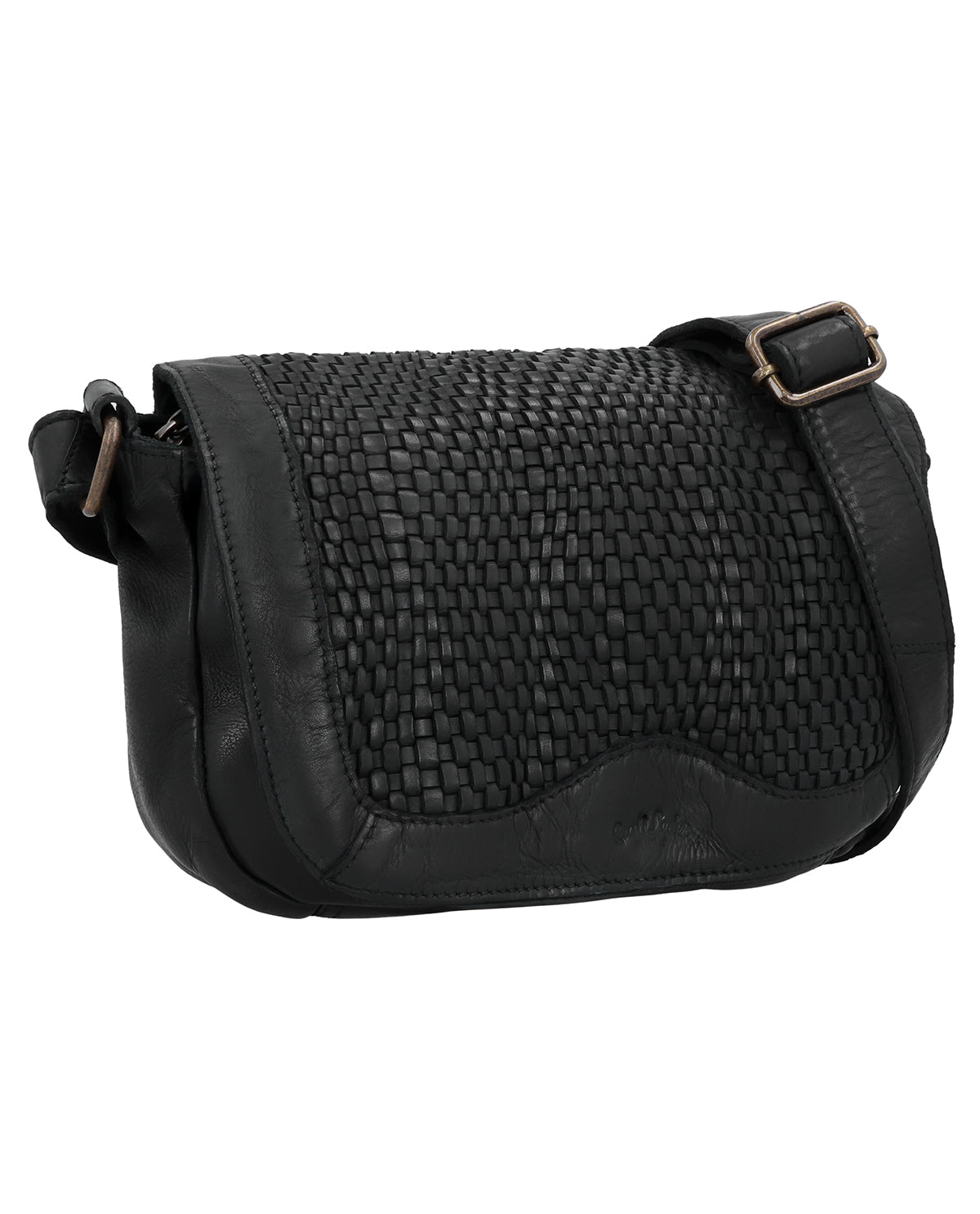 The small "Aliya" handbag is a black leather handbag for women that immediately catches the eye with its braided surface. The washed Cowhide leather feels pleasantly soft and gives the bag a relaxed, high-quality look. Aliya proves its functionality in everyday use: a hidden AirTag compartment provides additional security, while the adjustable shoulder strap offers flexible carrying options. The combination of a magnetic closure at the front and a zipper in the one main compartment combines comfort with a feeling of security when you're on the go.