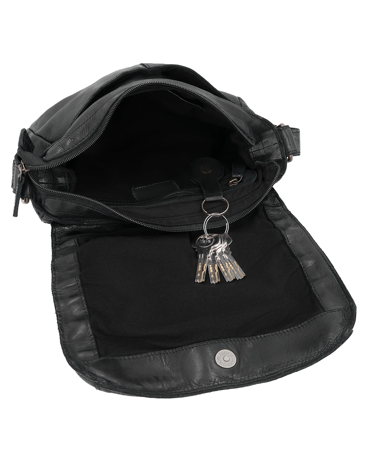 Inside, "Aliya" offers a zippered compartment and an additional slip pocket to store your essentials in an organized manner. A removable key ring keeps important items within reach, while another slip pocket on the outside and a zippered compartment on the back allow for quick access. One main compartment is securely closed with a zipper. An engraving patch makes it possible to personalize the outside of the bag. "Aliya" is a small leather handbag for women that harmoniously combines design, structure, and everyday practicality.