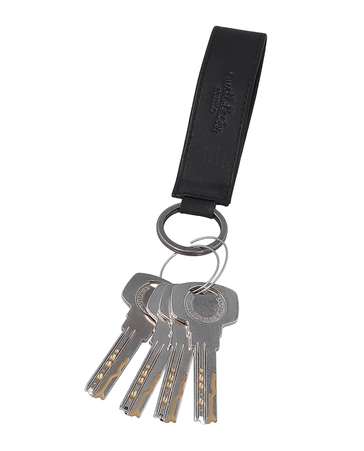 The "Miran" key ring is a black leather accessory for men and women that impresses with its clear shape and minimalist design. The simple design has a timeless look and easily adapts to different bags or key rings. Thanks to the sturdy metal ring, your keys remain securely attached and always within reach. "Miran" stands for uncomplicated functionality in a compact format.