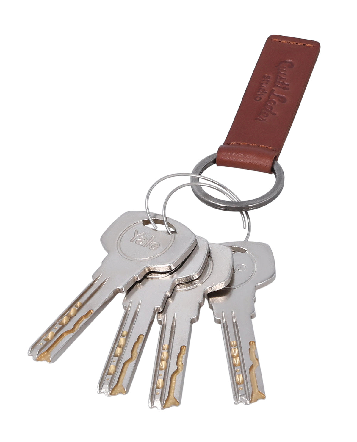 Keychain leather accessory women men light brown leather