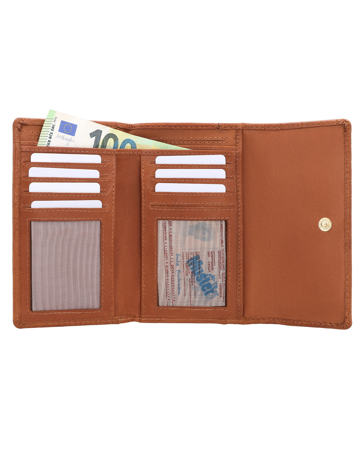 Are you looking for a classic, fold-out wallet with enough space for lots of cards and an extra-large coin compartment? Made from high-quality tanned cowhide leather, "Gloria" offers you exactly that and also impresses with its trendy crocodile look. Functionality with an extra dose of trendiness. In addition, "Gloria" is equipped with RFID protection, which makes it much more difficult for unauthorized persons to read your card data contactlessly – for more security in everyday life.
