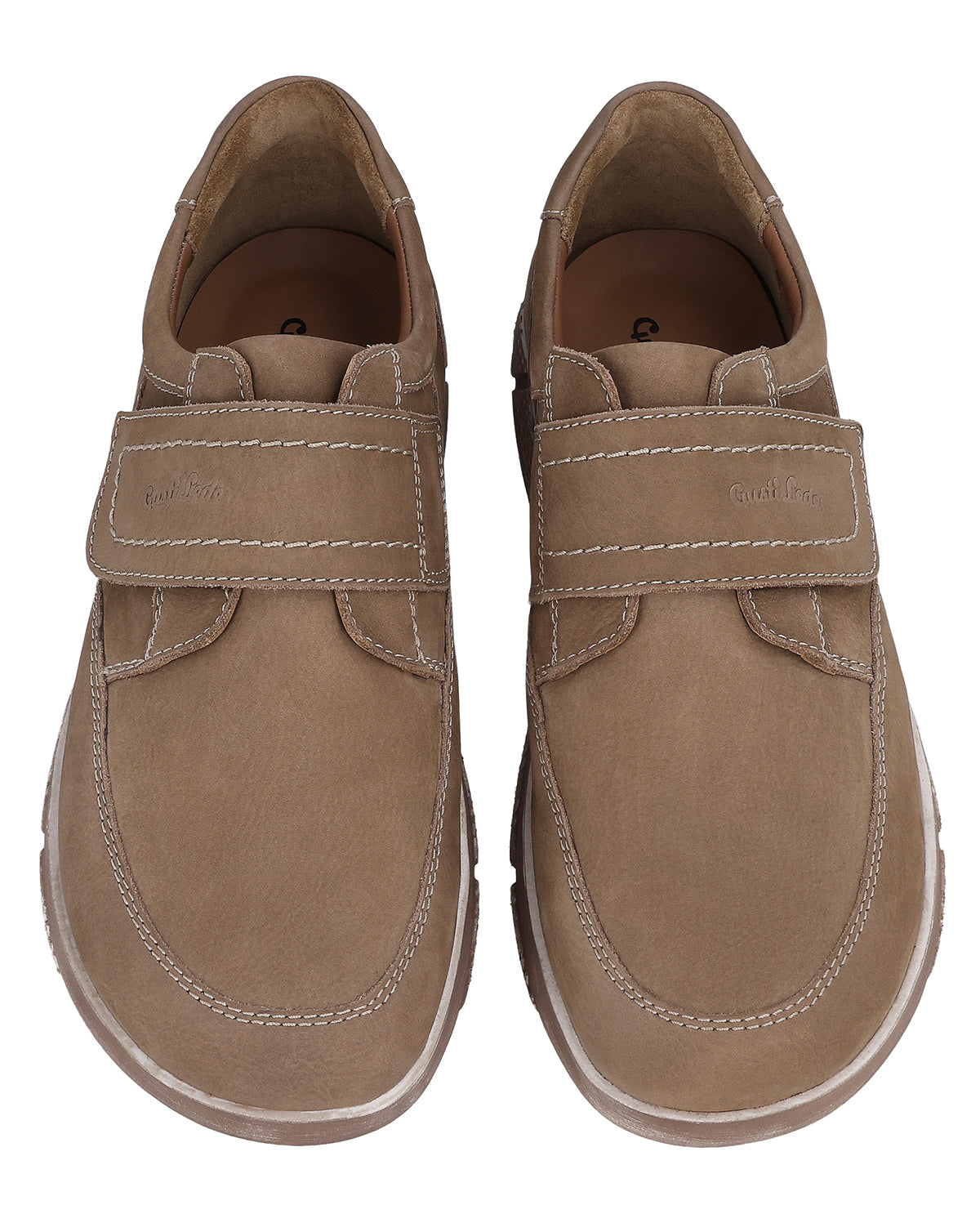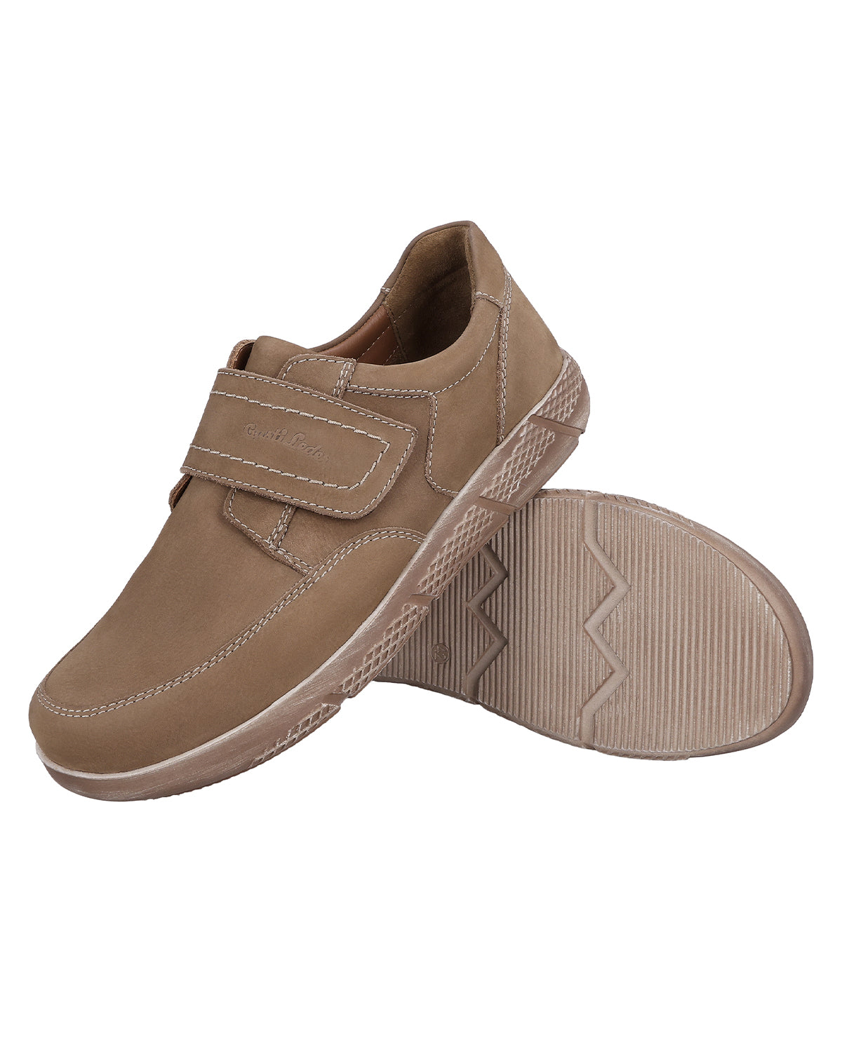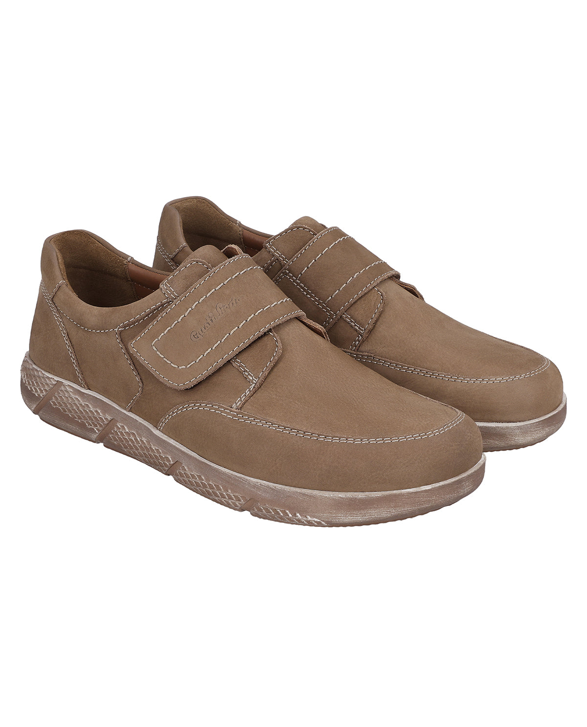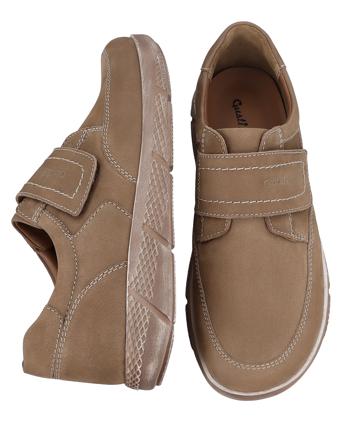 Inside, you'll find a smooth brown lining and a softly padded insole with Gusti Leather print that cushions every step comfortably. Decorative stitching on the heel and sides gives "Vito" additional structure, while the large Velcro fastener ensures optimal support and flexibility. The Gusti Leather logo embossed on the strap adds an elegant accent and rounds off the design. With "Vito," you are choosing leather shoes that harmoniously combine style, everyday practicality, and comfort.