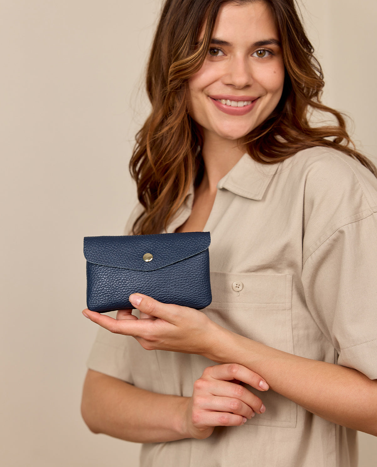 Storage bag organiser small leather bag womens blue leather - Made in Italy