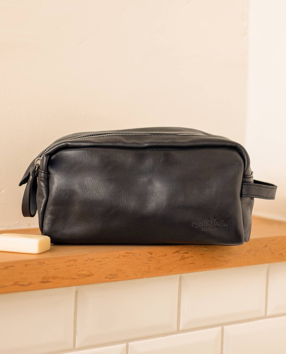 Toiletry bag leather bag make up bag black leather