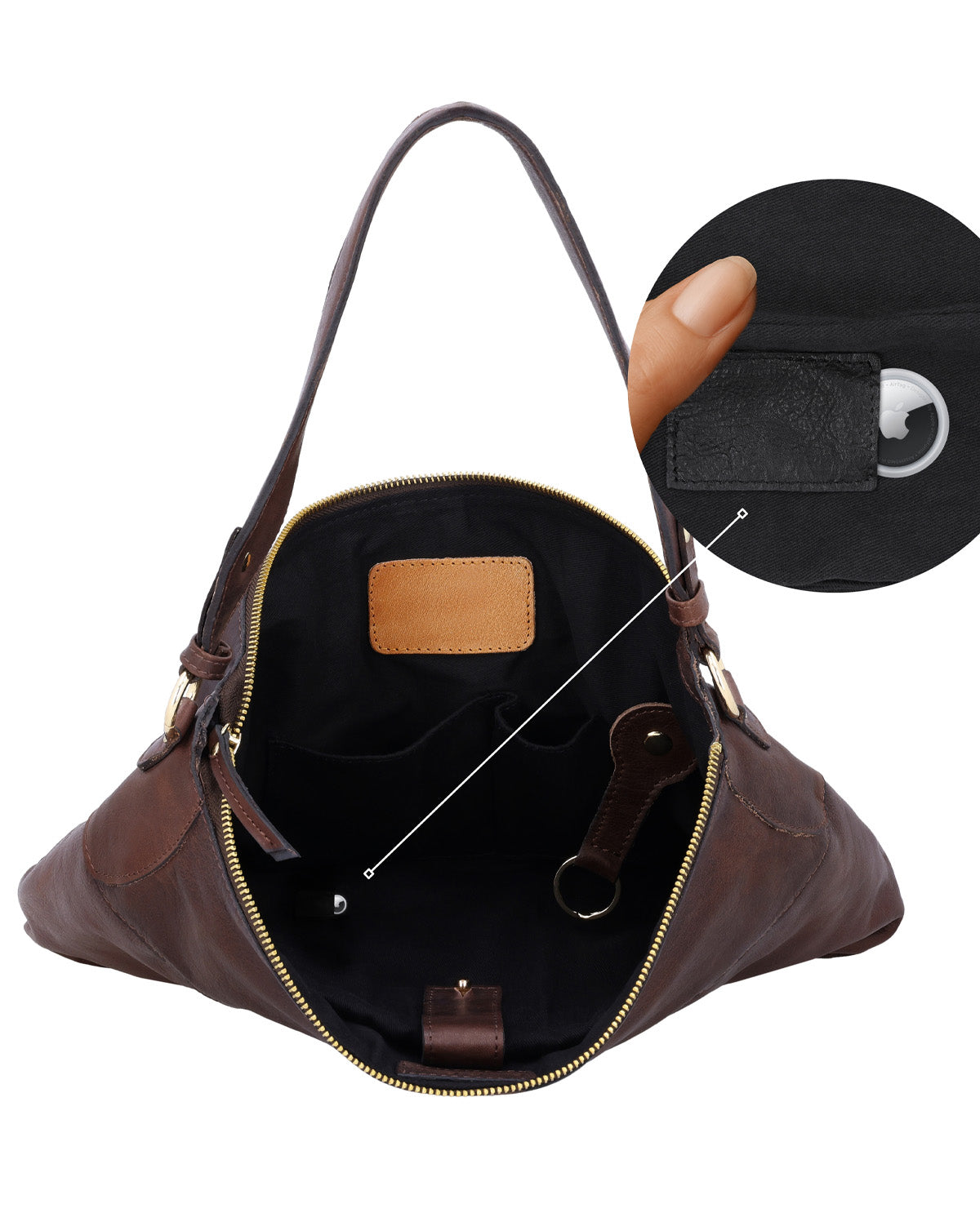 "Hannah" closes with a sturdy zipper so that nothing falls out or gets lost. Inside, you'll find enough space for your water bottle, wallet, notebooks, keys, and pencil case. The integrated key ring holder is particularly practical, allowing you to securely attach your keys while still having them quickly to hand. In addition, "Hannah" has a secret AirTag compartment that is discreetly located at the bottom of the bag or directly under the zipper – for extra security on the go. There is a zippered compartment on the back, ideal for your smartphone or headphones, so you always have everything at your fingertips. Our products come from manufacturers who meet the highest standards of quality, sustainability, and fair working conditions. With your choice, you are supporting a responsible industry that is committed to environmental protection and fair working practices – so you are not only showing your style, but also your ethical awareness.