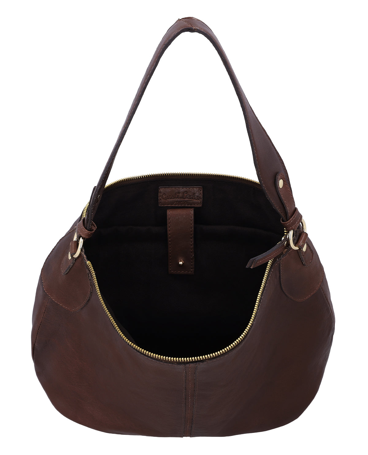 Are you looking for a classic shopper that will never leave you out in the rain? Then "Hannah" is just right for you. This medium-sized shoulder bag made of sturdy and durable cowhide leather in a soft dark brown is right on trend. With its spacious interior compartment, it offers enough space for everything you need for a stroll through town or your everyday working life. An integrated laptop compartment ensures that your notebook is safely stowed away. Inspired by the lively flair of Berlin, "Hannah" combines urban style with practical functionality. The design is rounded off by a Gusti logo patch and an engraved patch, which you can use to personalize "Hannah."