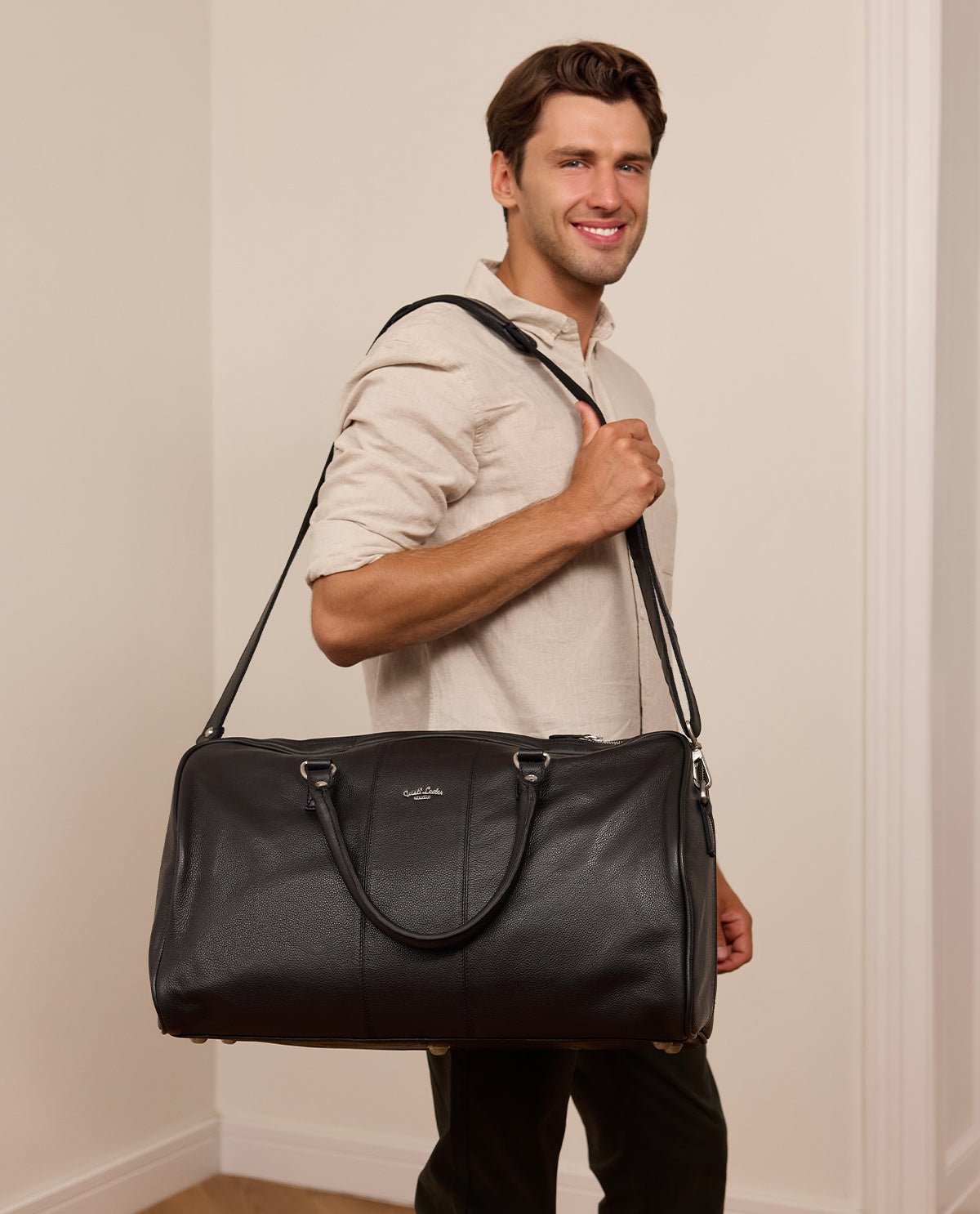 This spacious travel bag made of sturdy cowhide leather won't just win you over with its timeless, classic design, but with its comfort and space too! “Simen” has a 23-litre compartment, so there's plenty of space for your clothes, and shoes, as well as your current read, wash bag and notebook. This handy holdall comes with two handles and a matching shoulder strap, so you'll be super comfortable wearing “Simen”.